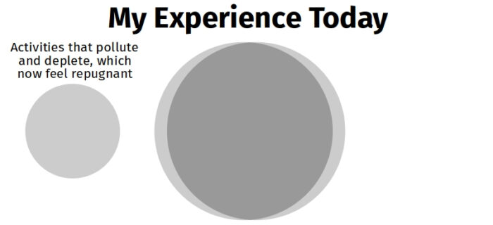 In Venn diagrams, I was taught that activities people enjoyed and improved their lives did not overlap with activities that improved the environment: