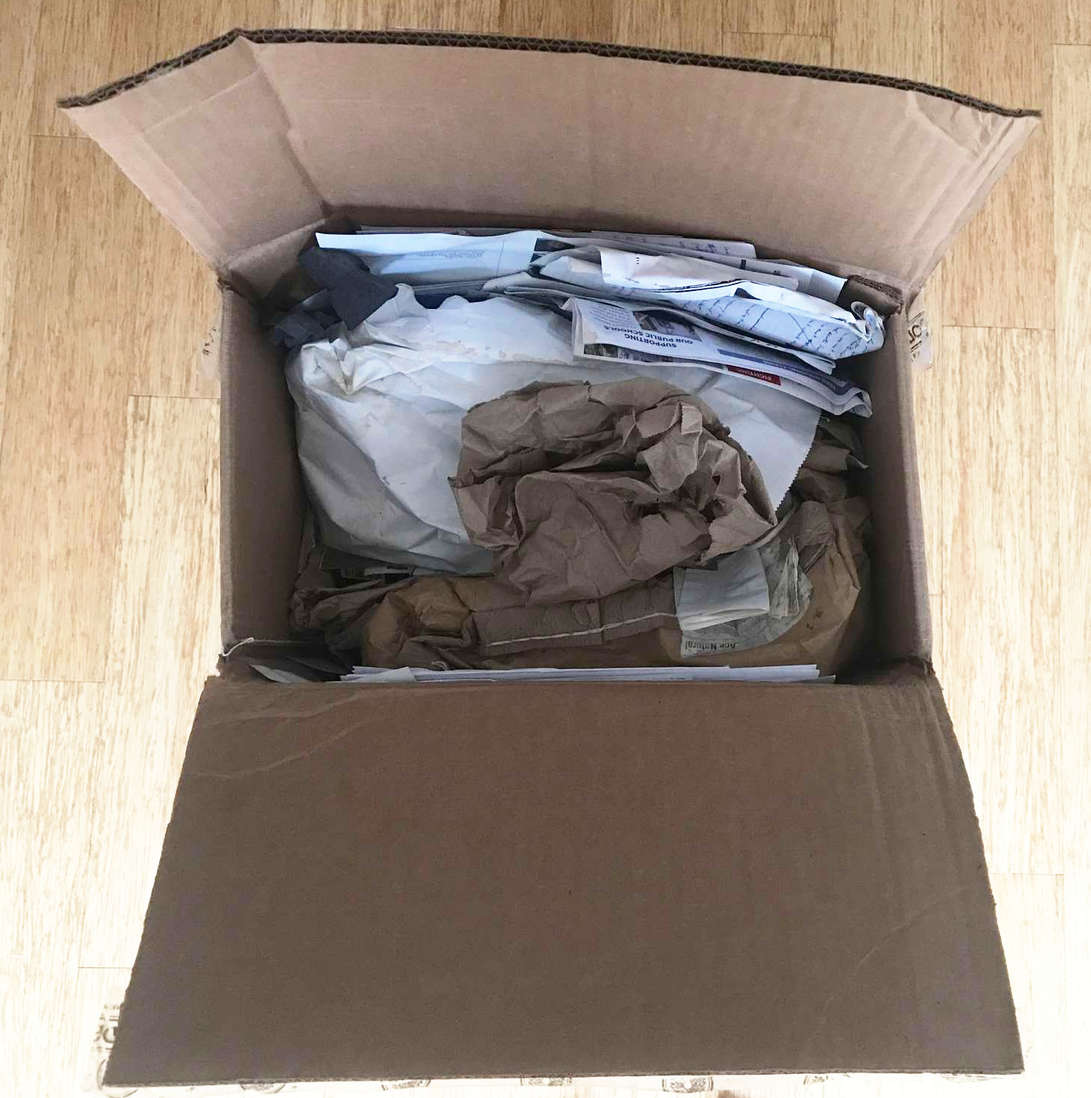 I’ve been saving my recycling to take to my building’s recycling bin when I empty my trash, but the years keep rolling and I haven’t filled a load of trash. I’m going to bring my recycling to my building’s recycling bins.