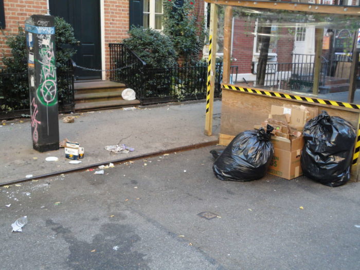 I took another early morning walk last weekend to take pictures of our world. New York City seems intent on pushing more outdoor restaurants. They aren’t the only cause of this situation, but they augment it.