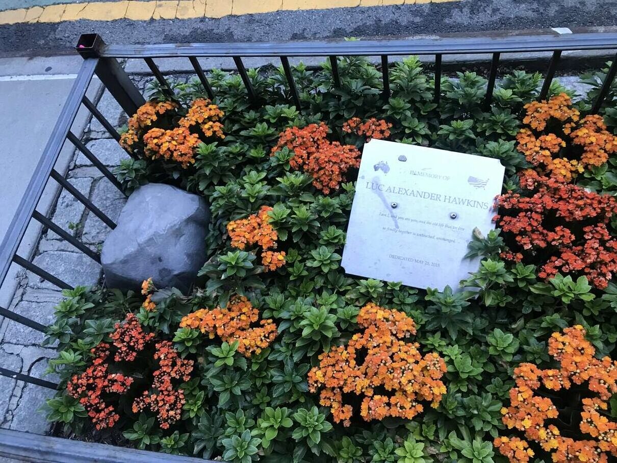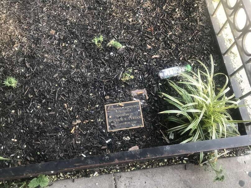 I walked past what was once likely a planter bed filled with lovely flowers or maybe a tree. I presume it was something nice because someone installed a plaque that began “In loving memory of.”