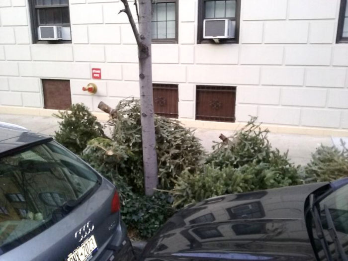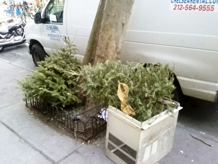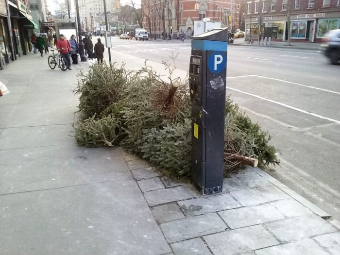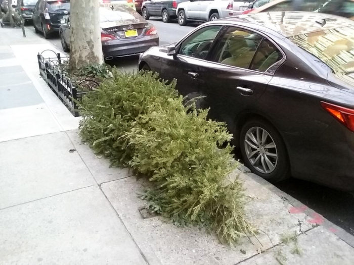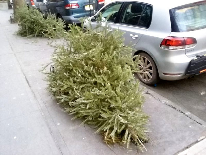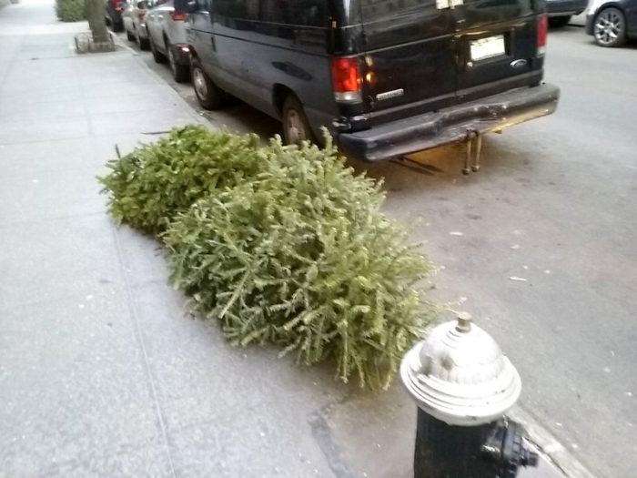 EDIT, December 26, 2017, 11:00am: Christmas was not even 12 hours past, and already I saw trees being disposed of. Here they are: