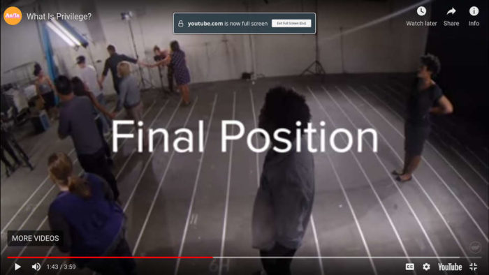 From the video’s image saying “final position,” it looks like more people from their group skewed near the front. I don’t know how they picked their group nor their starting point in the room, but from that group, it looks like I’d be significantly less privileged.