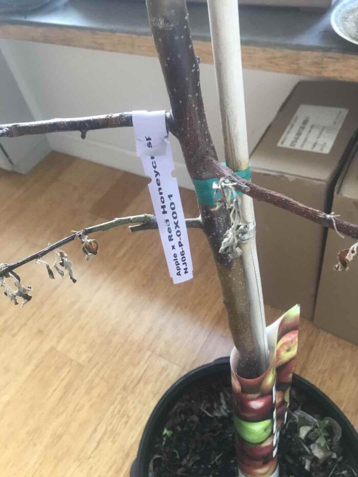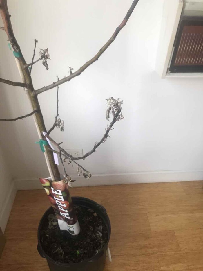 I brought it home and will try to resuscitate it. I doubt I can but all I have to do is water it. If I fail, I didn’t have much chance anyway so no great loss. If I succeed, I’ll get apples I help bring to life. Even if I water it optimally, the angles with the sun’s path relative to the window mean it won’t get direct sunlight.