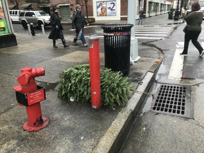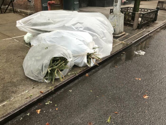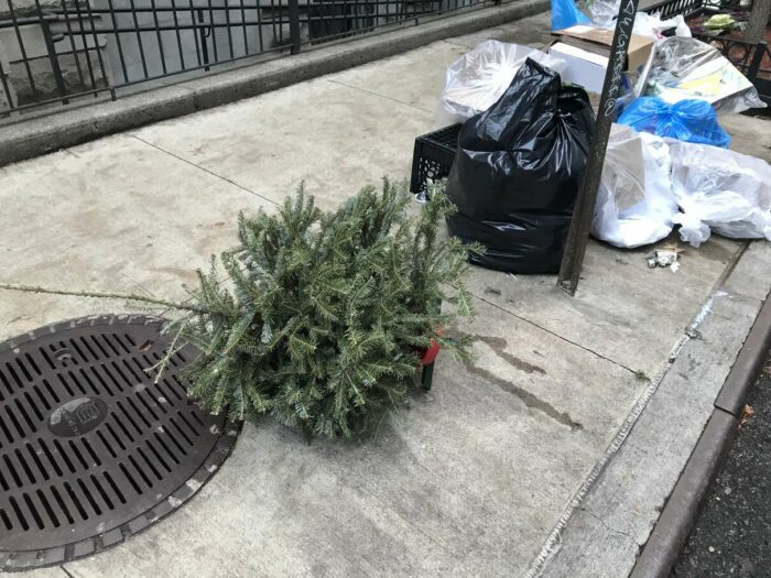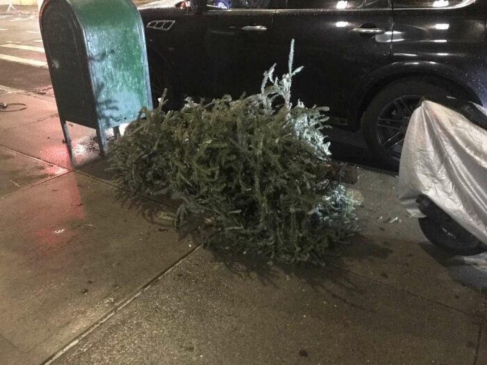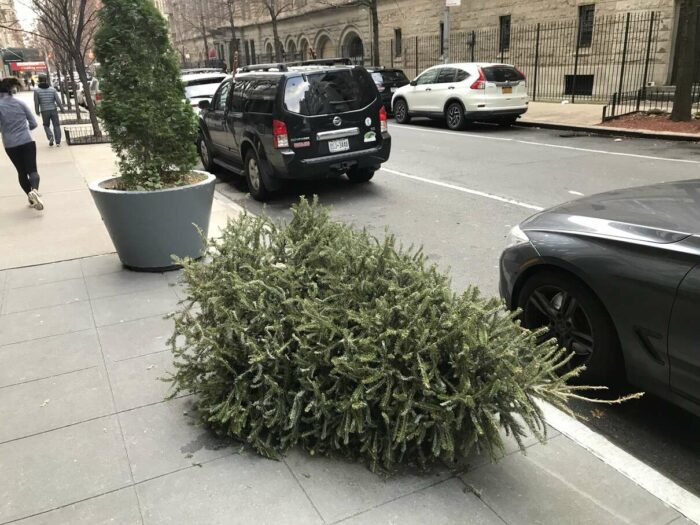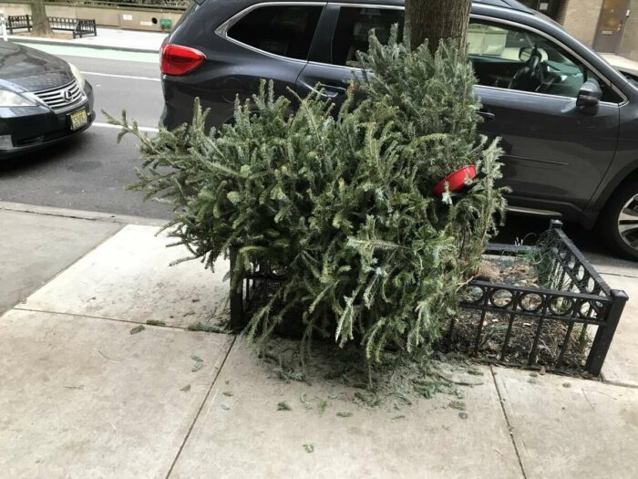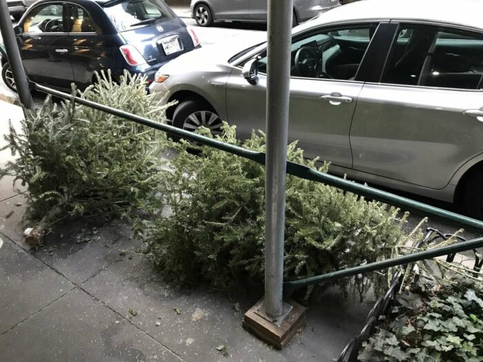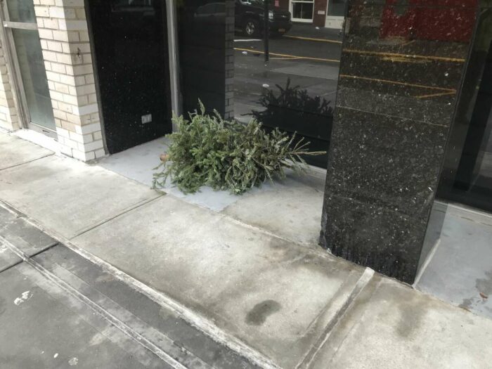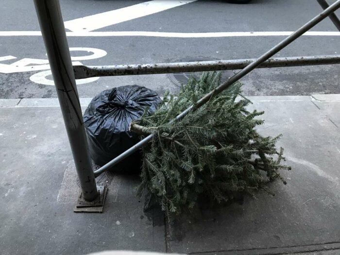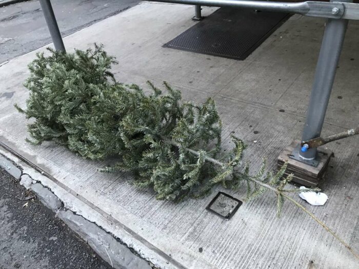 Christmas trees being thrown away after a few days’ use, part 1. Lovely pagan tradition, people.