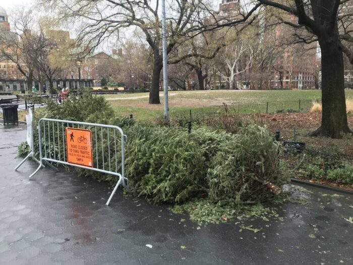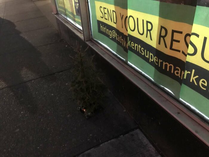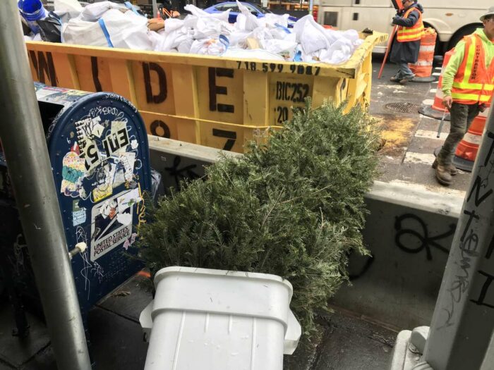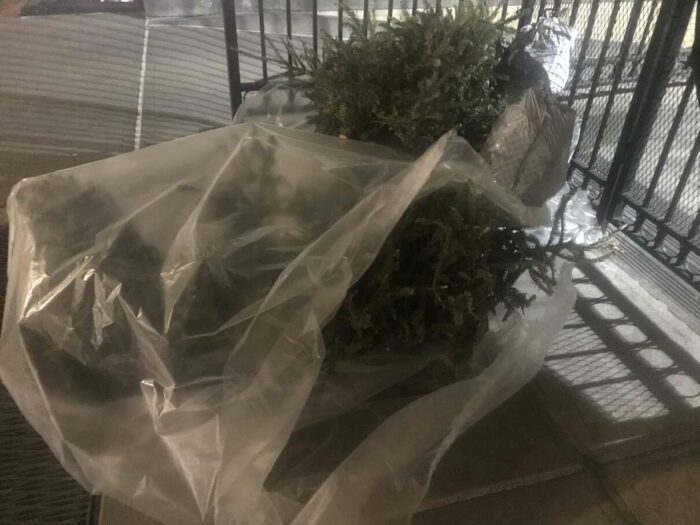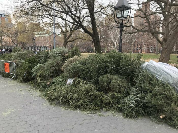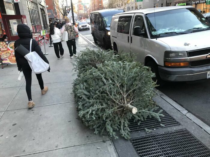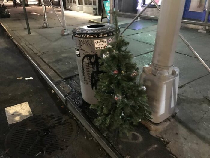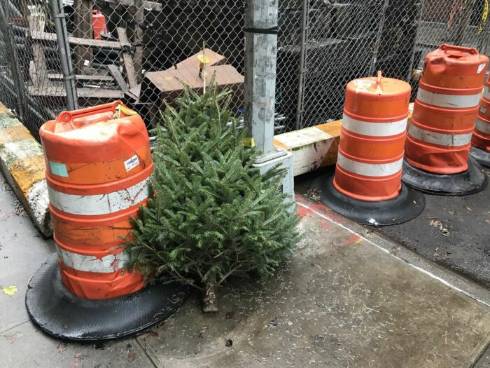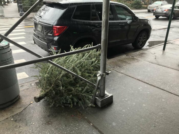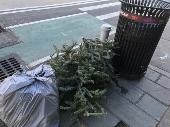 Christmas trees being thrown away after a few days’ use, part 1. Lovely pagan tradition, people.