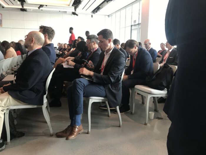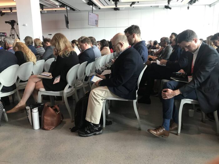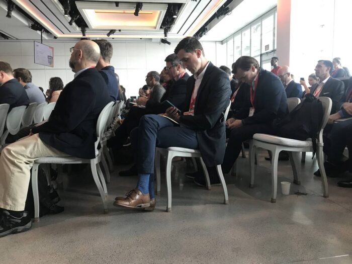 The people on stage acted like they were doing fireside chats, but it was clear had worked out the questions and answers, so it didn’t take long to sense that we weren’t going to see or hear anything authentic or meaningful, just scripted. Hence, the audience disengaged. At nearly every talk, the audiences looked like the pictures below. In other words, people flew to look at their phones while ignoring what they flew to claim to see. They could have just stayed home and ignored video of the talks at no loss.