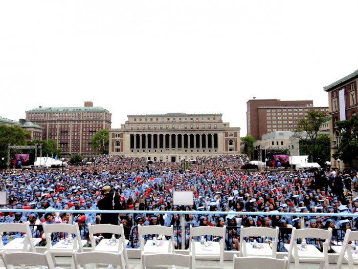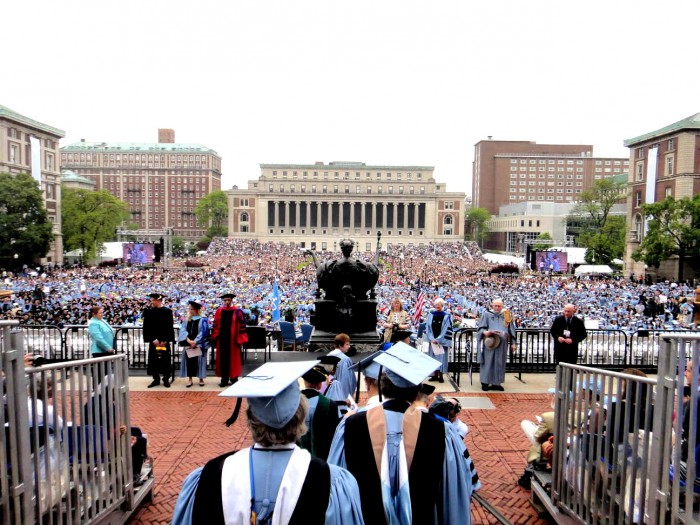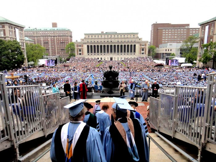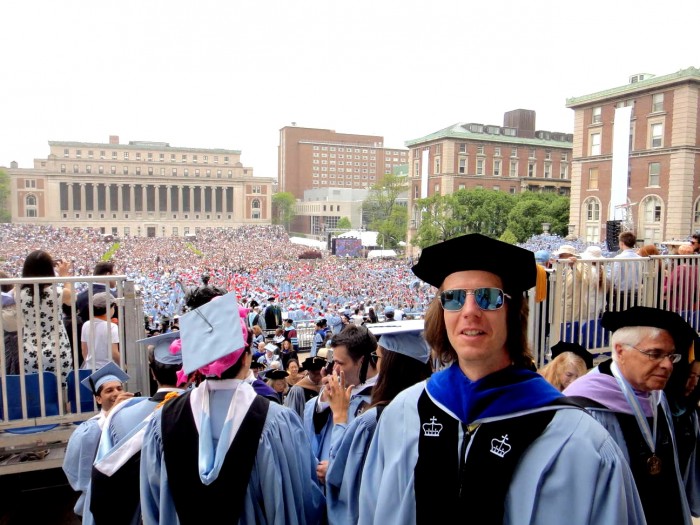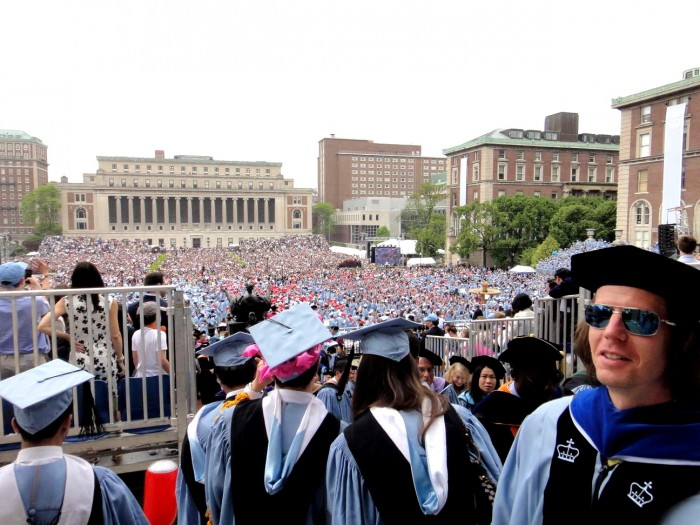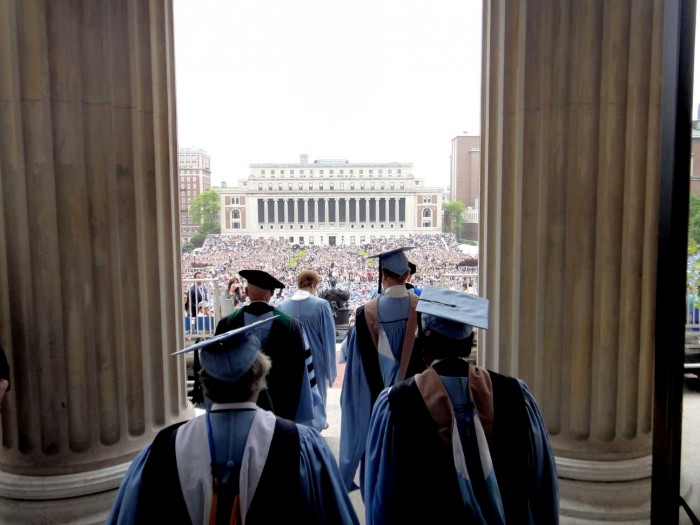 Last month Columbia invited me to walk in its big commencement for the twentieth anniversary of graduating college there. I don’t often get to dress in my medieval-looking PhD cap and gown, so I accepted. If you’ve never seen a Columbia commencement, it’s a great, stately affair with tens of thousands of graduating students and their families, all the more so when you realize how few spaces like its campus New York City has.