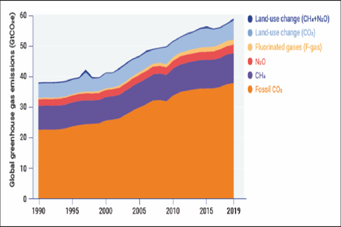 From the UK Government Office for Science‘s Guidance Trend Deck 2021: Climate change Published 28 June 2021, similar patterns of fossil fuels dominating, this time including other greenhouse gases.