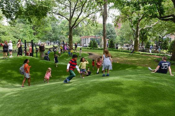 Speaking of Washington Square Park, I want to call attention to the children’s hills in the south west corner. Everyone agrees kids benefit from playing in nature, like in woods, on trees, in rivers and oceans, and on grassy spaces.