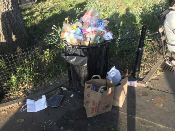 I took pictures mostly of trash in garbage cans, but there was plenty on the ground, taking pictures of which would have created identifiable pictures of people, which I didn’t want to do. Even the stuff in cans will make its way to oceans, even if delayed with time in a landfill. It funds more extraction, burning, etc.