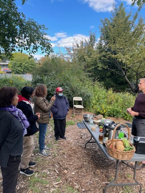 Yesterday morning I packed up a lot of stuff: my pressure cooker, solar panels, battery, and enough food for a bunch of people, and took the subway to the Bronx to give a workshop. Maybe fifty pounds total, but worth it.