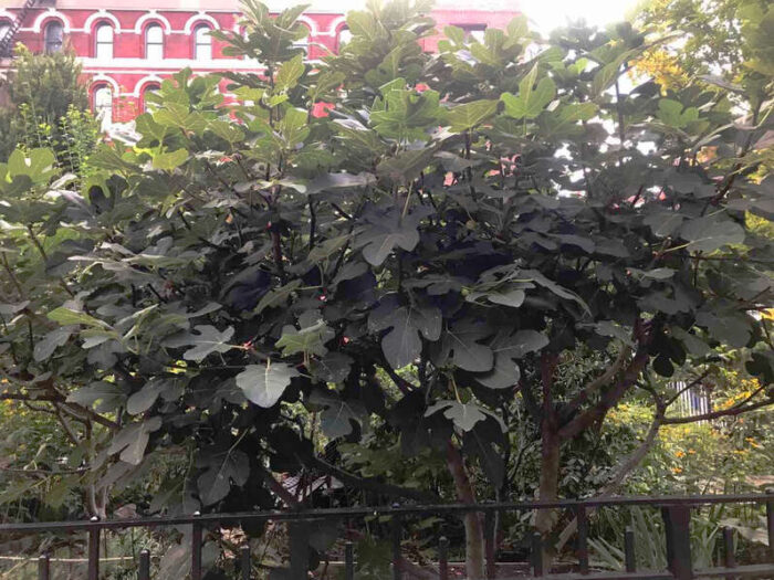 Here’s a fig tree I found near me. It’s in a community garden. You have to look to see the figs. They aren’t ripe yet. I’ll ask the people in the garden if I can pick any and won’t if they say no. My sister has a few fig trees in Queens and usually spares a few.