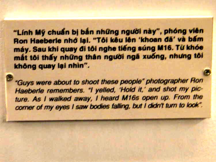 I also included one (of many) heart-breaking image and quote by a photographer of one of the soldiers’ killings. Even those barbaric acts didn’t register as strongly, at least with me, of the displays of the use of agent orange and other dioxin-laced weapons, produced by Monsanto and Dow. The results on people are gut-wrenching. I didn’t have the heart to take those pictures. It seems the U.S. government knew the effects, but as far as I could tell, the enemy kept hiding in the trees so they had to kill the trees. Vietnam otherwise looks like a tropical paradise.
