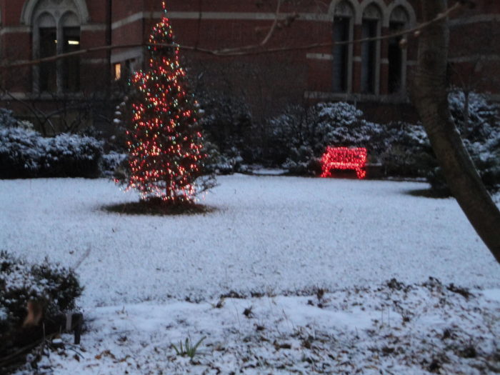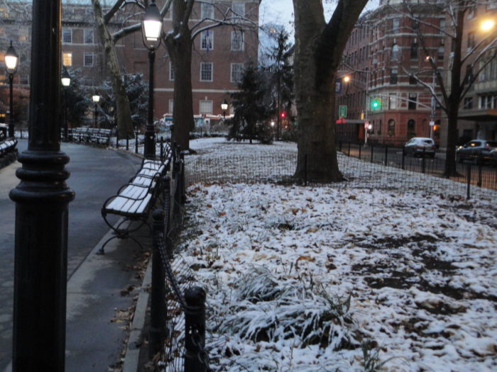I’ve taken pictures of my neighborhood’s descent into disgust from the supply of doof and other garbage. Yesterday morning I opened the shades to see a dusting of snow.