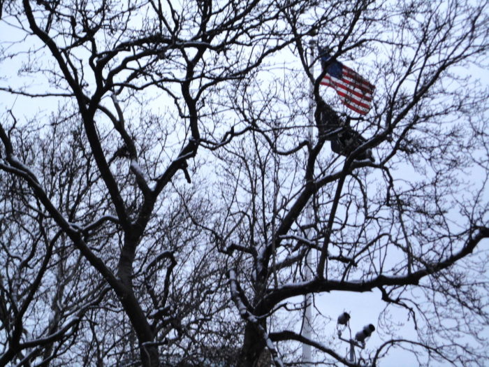 I get so down about global warming and roughly 330 million Americans continuing to pollute while saying they’re concerned, acting like they aren’t contributing. Here was a sign that we haven’t lost winter here yet, amid reports of many places 30 or 40 degrees above average.