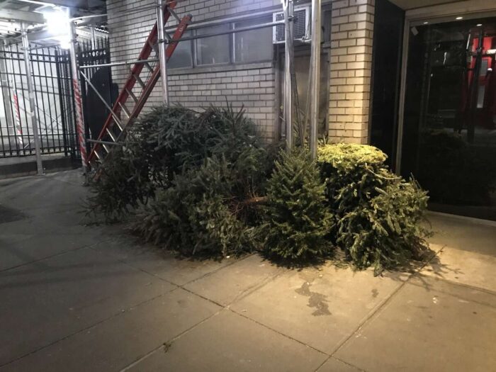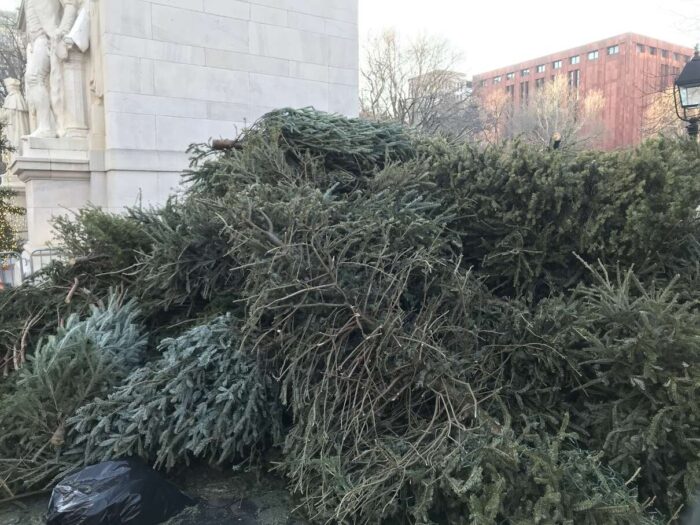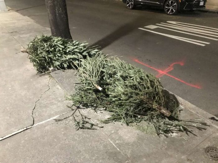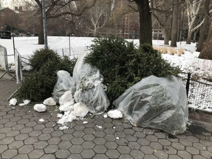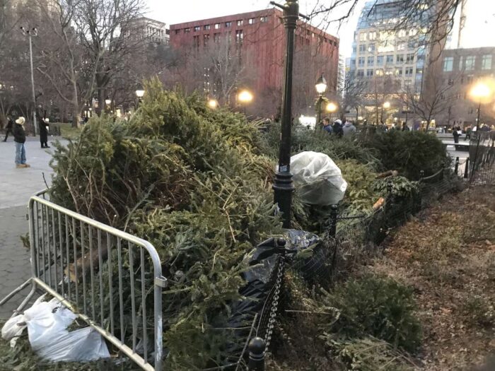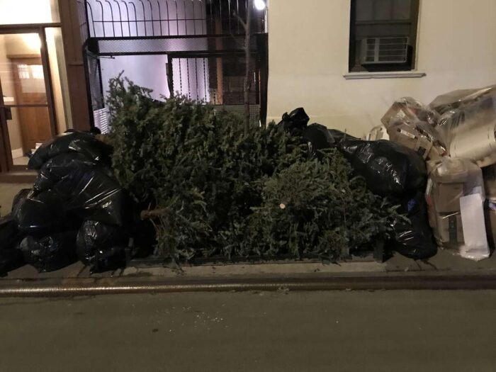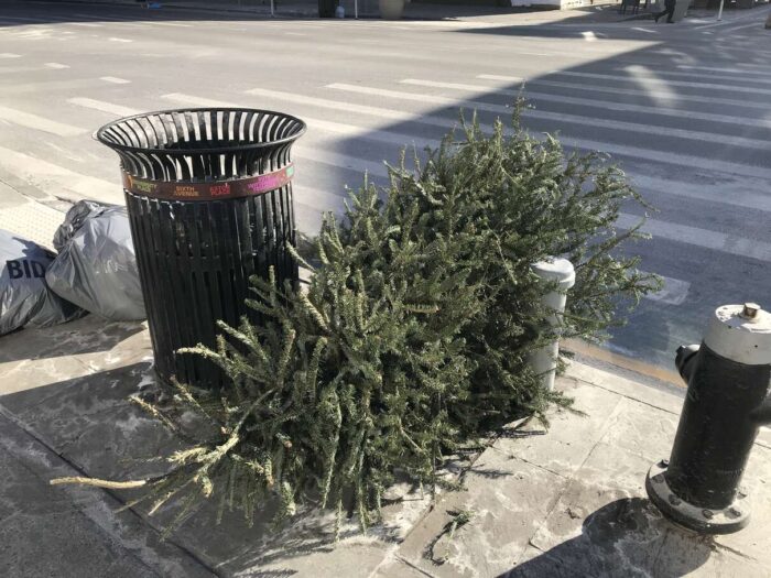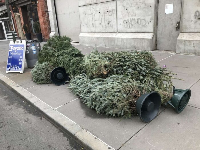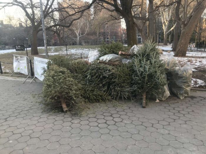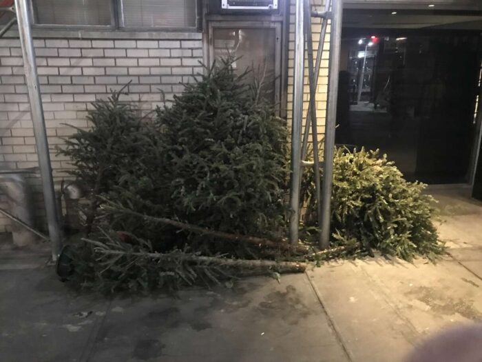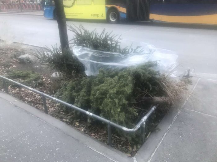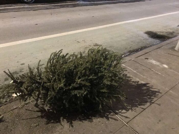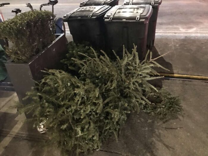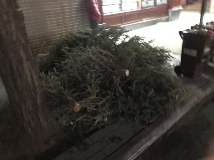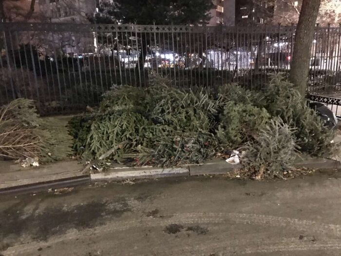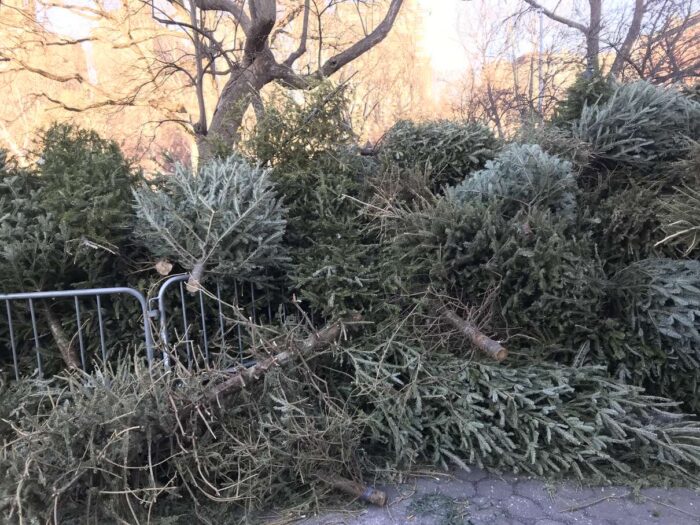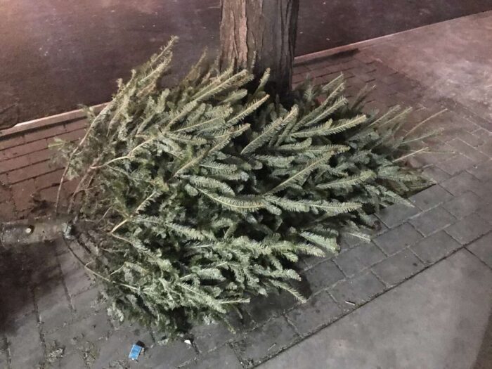 Hundreds of trashed dead Christmas pagan trees, 2025