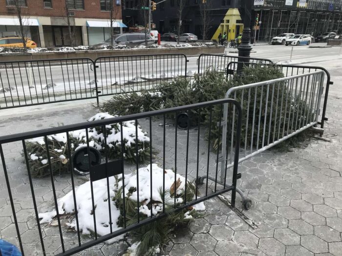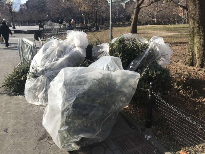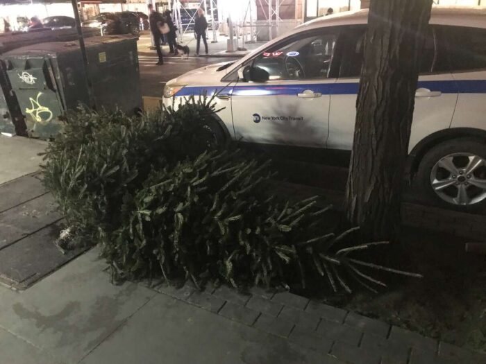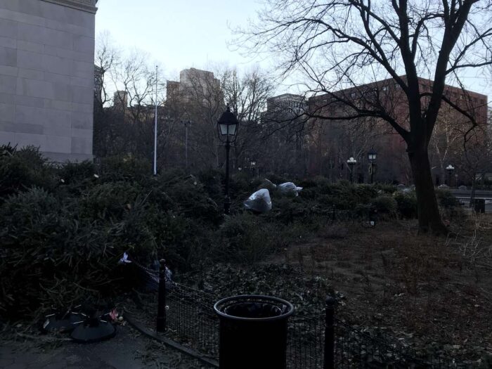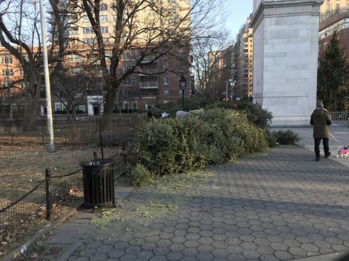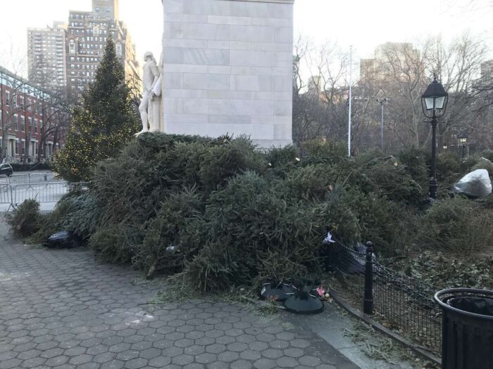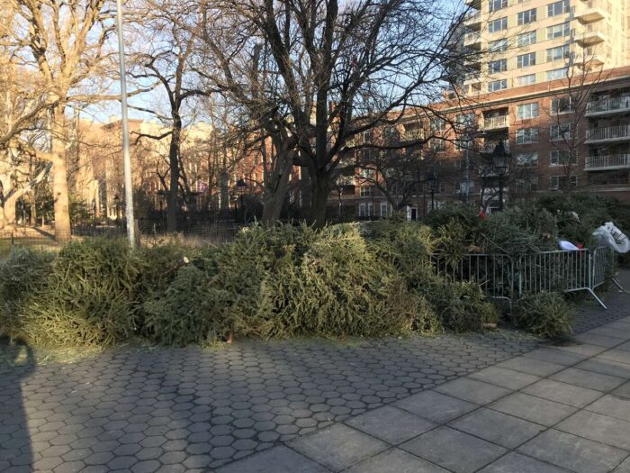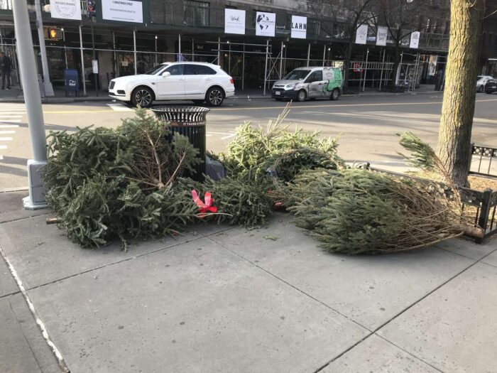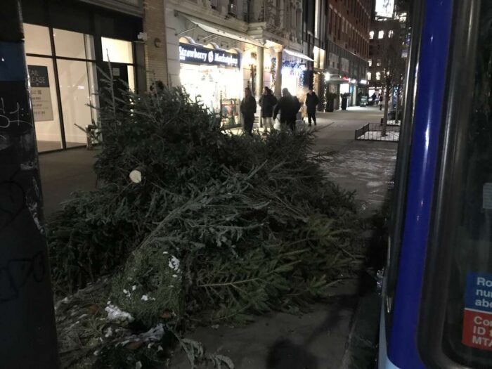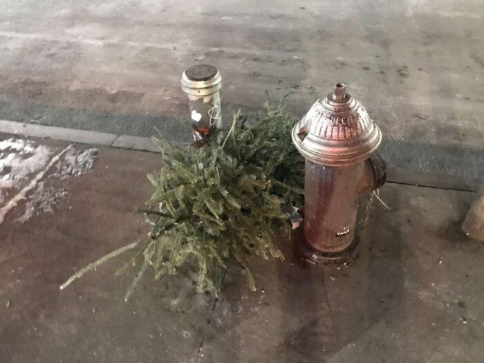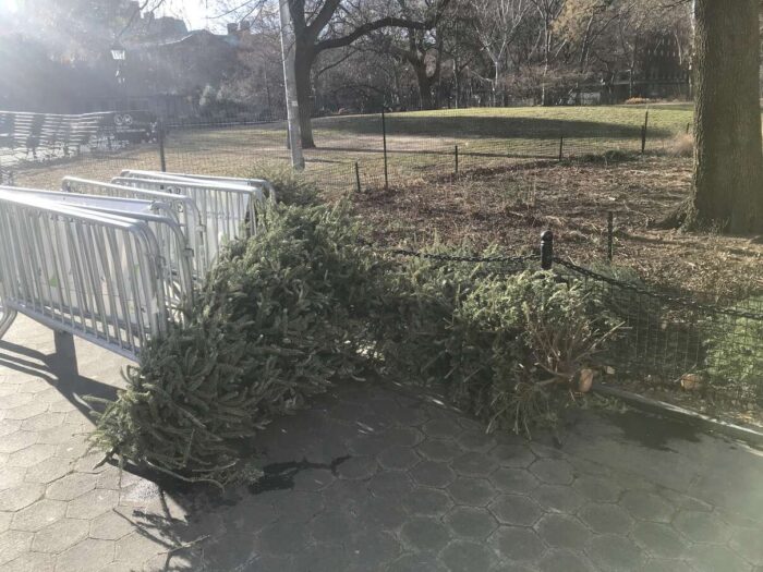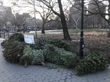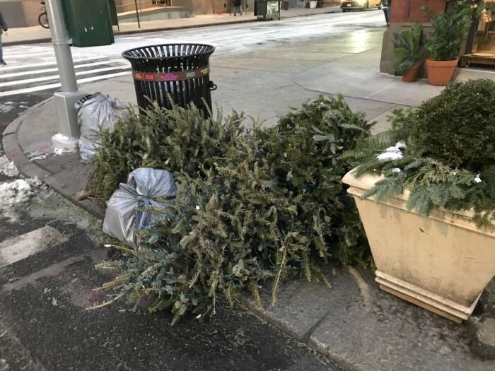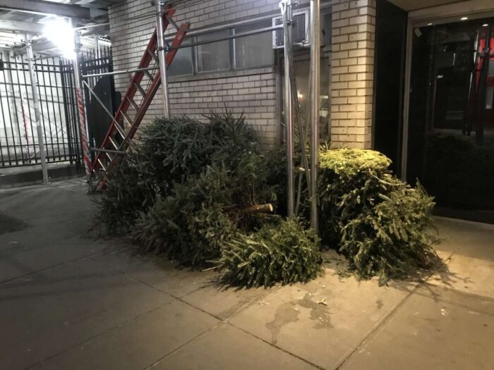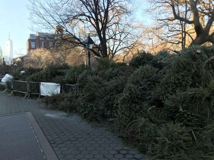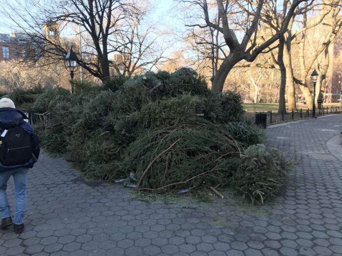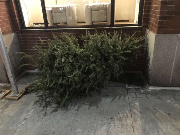 Hundreds of trashed dead Christmas pagan trees, 2025