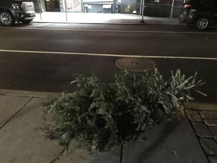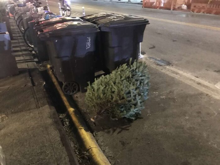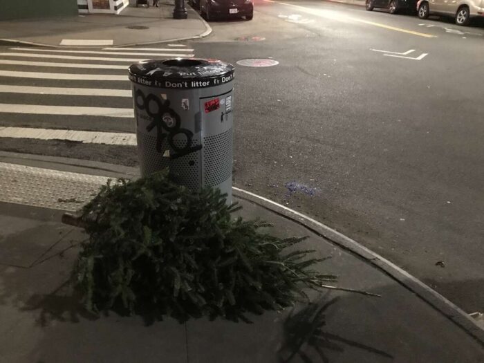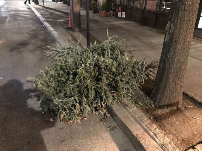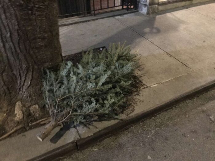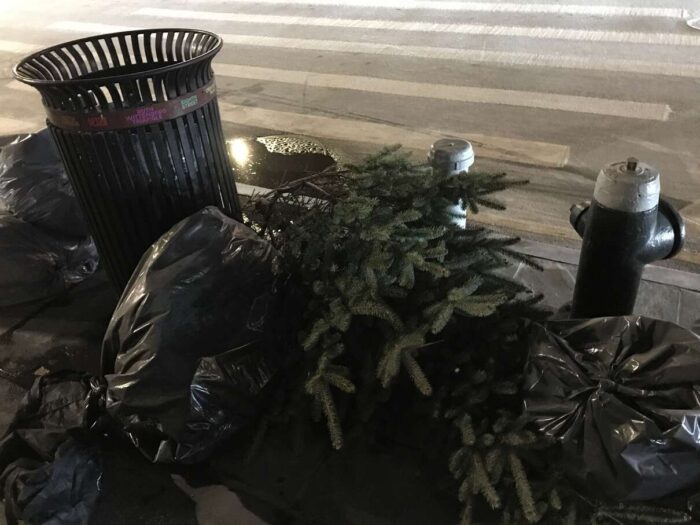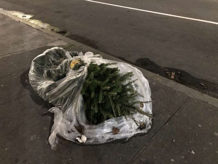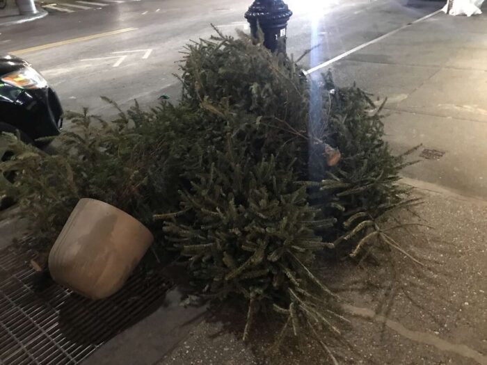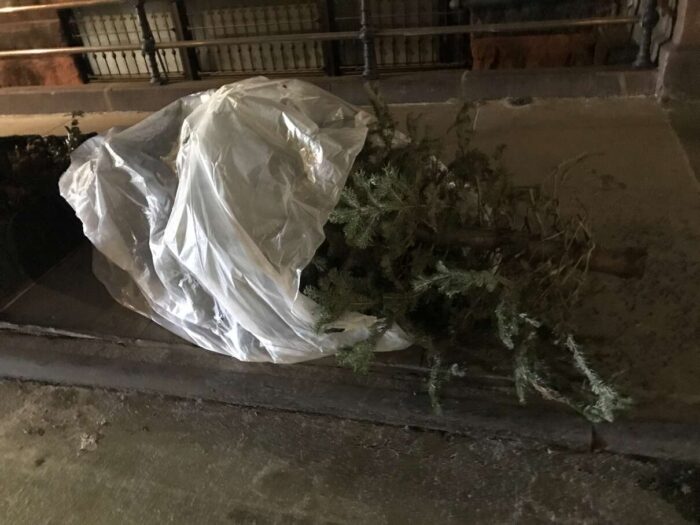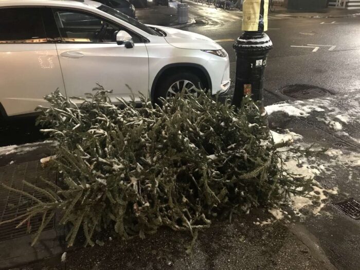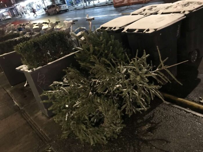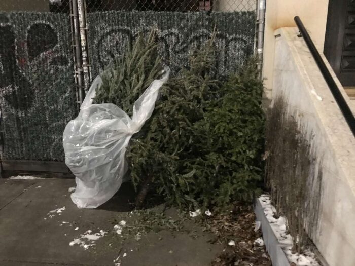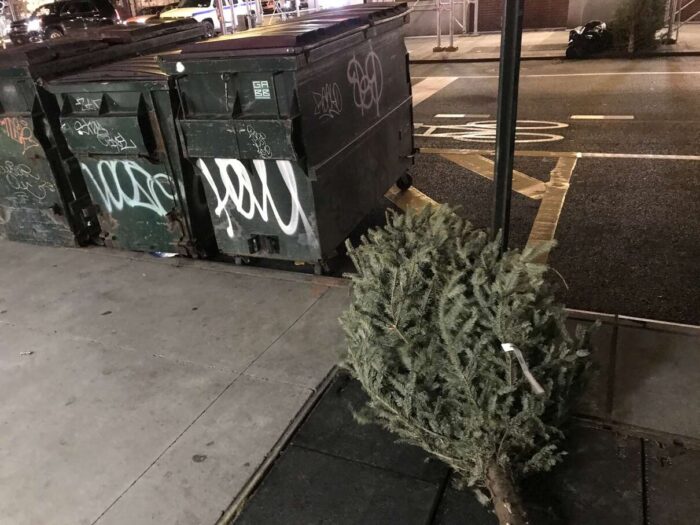 Every year, I take pictures of how people trash their trees. I find the waste and death tragic and the images of something that was supposed to celebrate life become garbage. This season, I started seeing trees trashed before Christmas: Ten days before Christmas people are already throwing away their Christmas pagan trees.