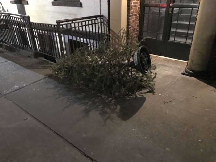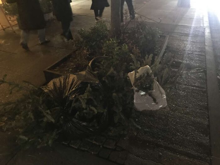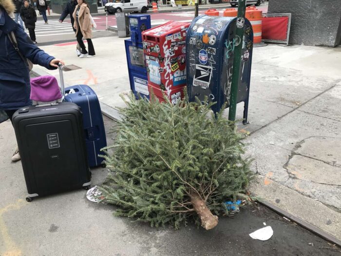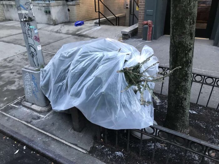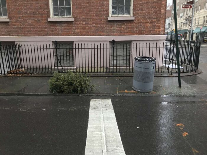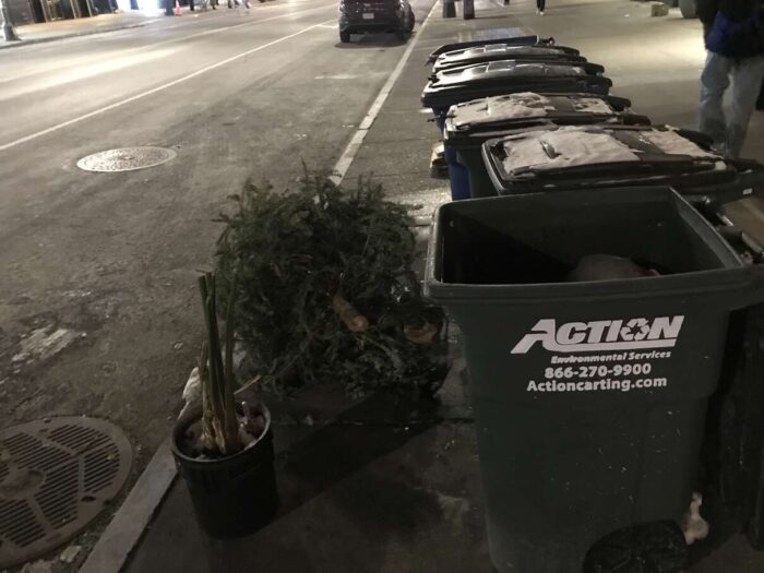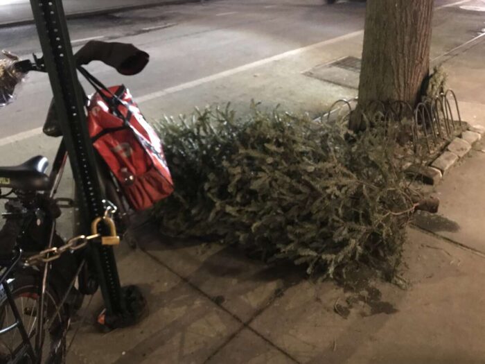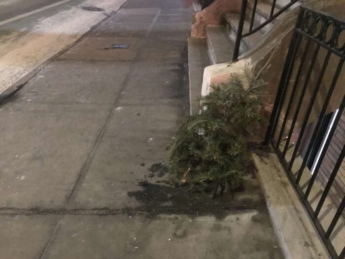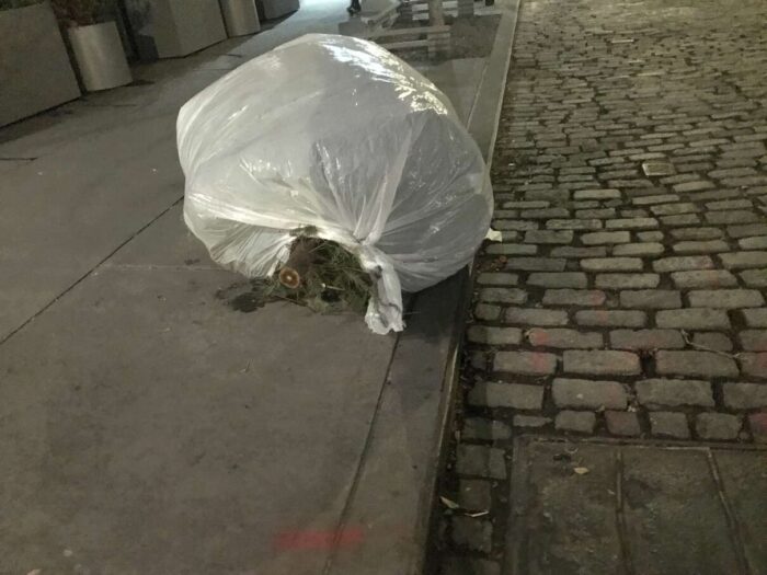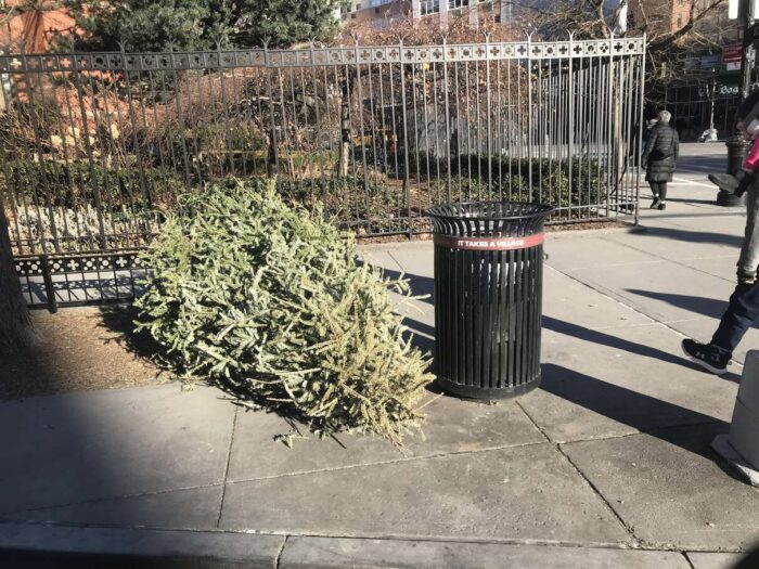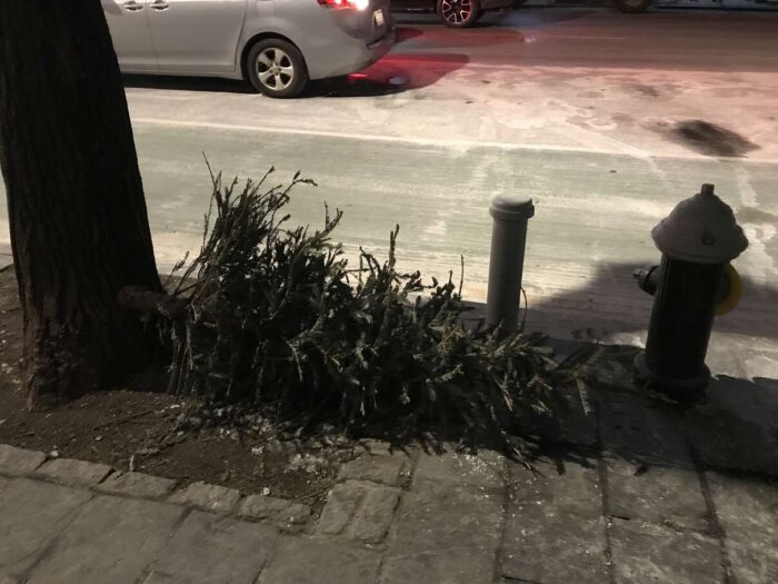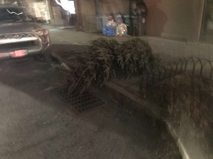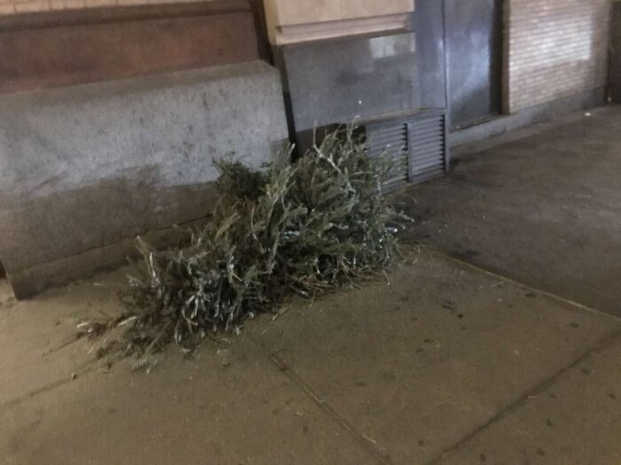 Every year, I take pictures of how people trash their trees. I find the waste and death tragic and the images of something that was supposed to celebrate life become garbage. This season, I started seeing trees trashed before Christmas: Ten days before Christmas people are already throwing away their Christmas pagan trees.