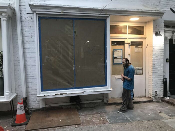 EDIT: If I took pictures of every junkie in every doorway, I wouldn’t be able to travel far from home, but this store was occupied just a few days ago so I’m combining it with the series of pictures above. The ground in front of the person was covered with paraphernalia, cigarettes and other garbage. The person him or herself was incommunicado.