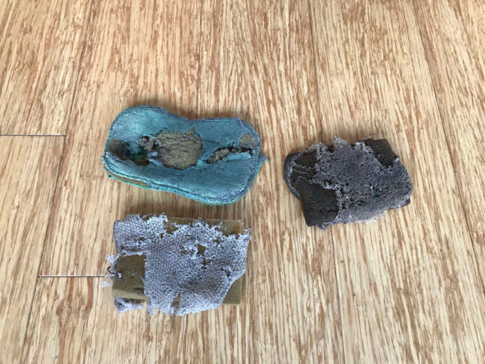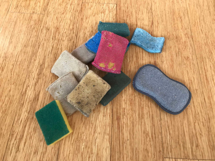 It’s getting close to time to retire some sponges I’ve been using. They’re pretty decrepit, but they clean my floors and what they’re supposed to. Here they are: