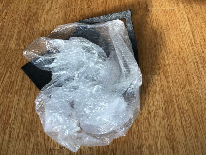 Oh yeah, also not in that bag are a couple pieces of packaging from when the solar panel and battery pack companies sent me replacements when theirs broke. Here’s that packaging: