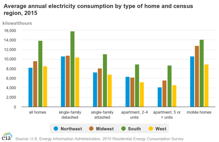 Here are American averages broken out by region and home type. All told, Americans average