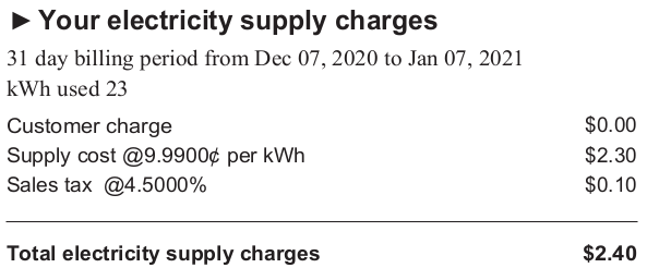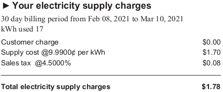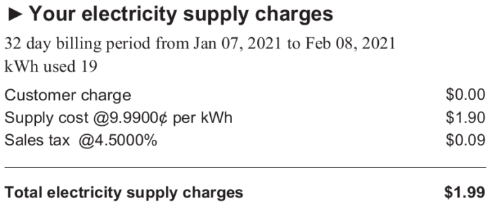 I’m reporting after receiving my latest electric bill.