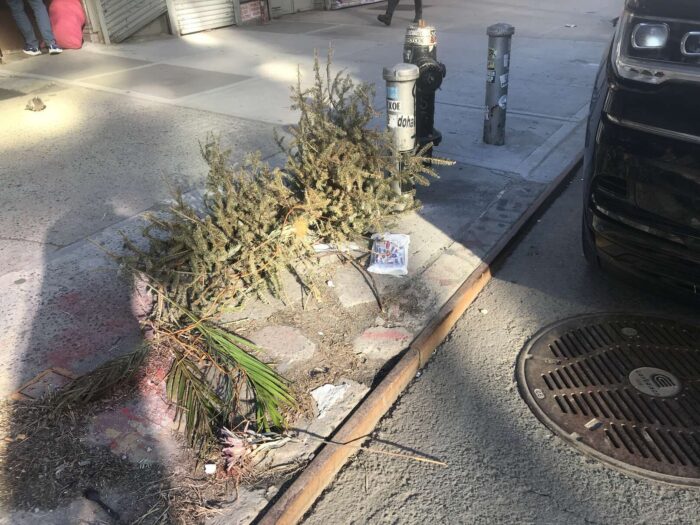 Hours after posting The last Christmas Pagan Trees of the Season?, which wasn’t my last post this season speculating I’d seen the last of trees we killed and trashed this season, I saw another one. Then today, before I could post about it, I saw yet another.