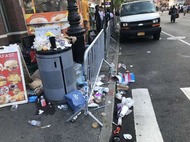 Yesterday was the annual Pride March, which means a wrecked Washington Square Park. I make it an annual habit to take pictures of the state of the park after. As usual, to clarify, I’m selecting the event not to say anything about the march itself, its causes, or its people, but for the garbage. My mission is to change American and global culture and the pictures illustrate our culture. I wish I could record the noise overnight of the street sweepers, garbage trucks, and leaf blowers. They sounded like jet planes right outside my window, hour after hour.