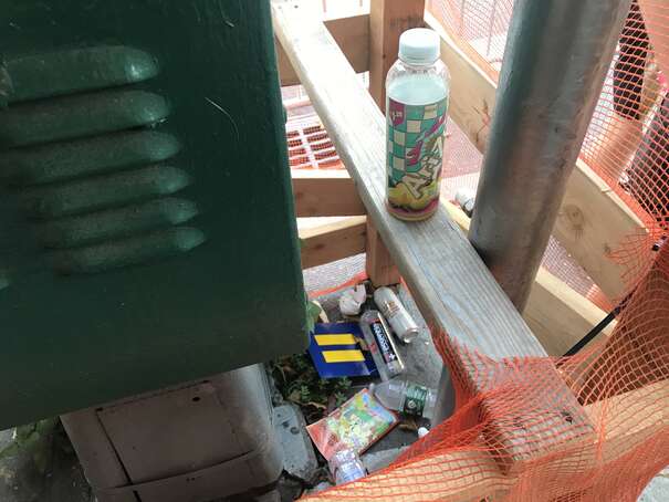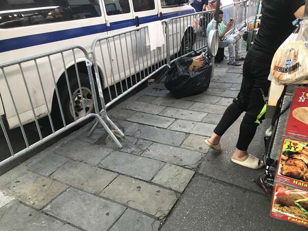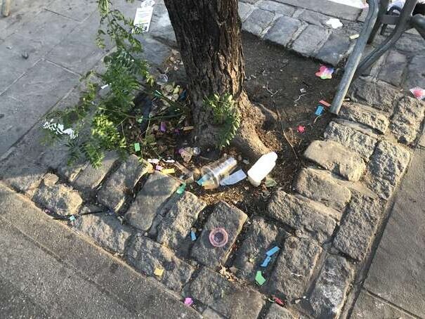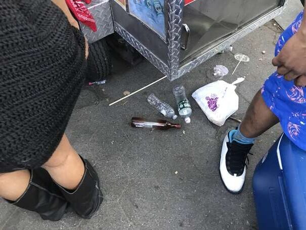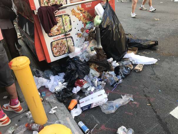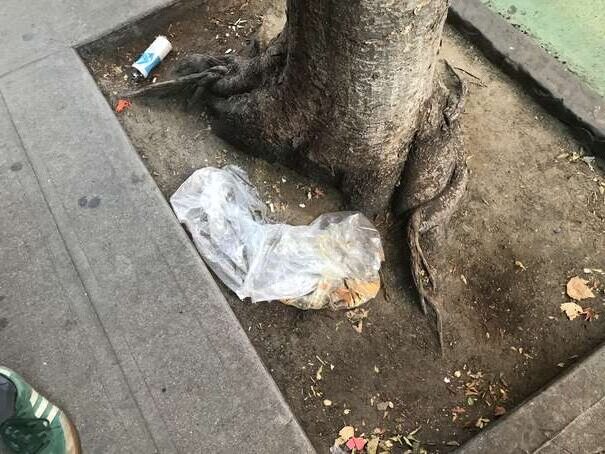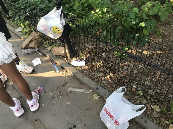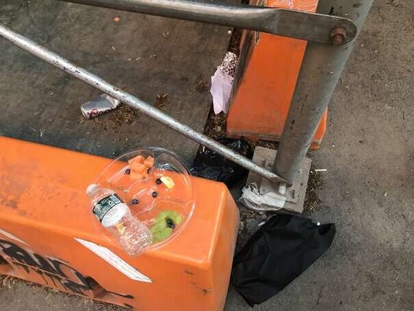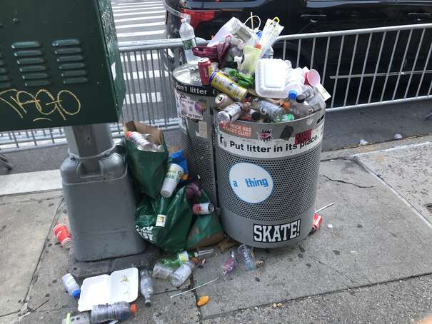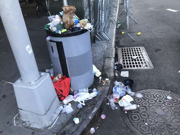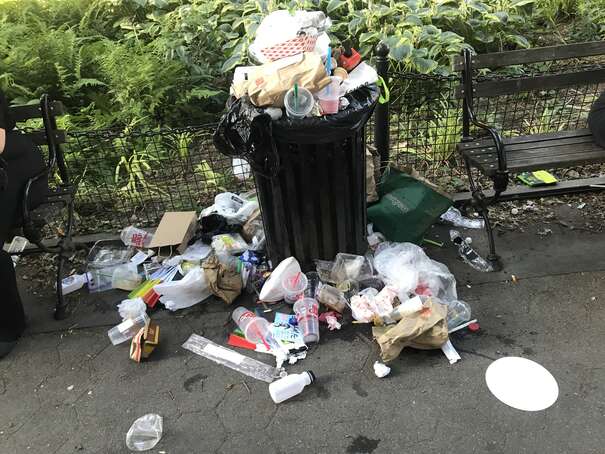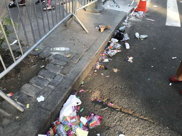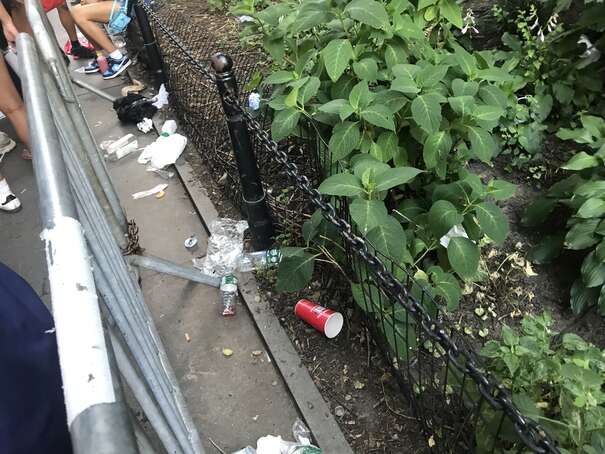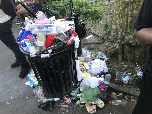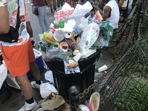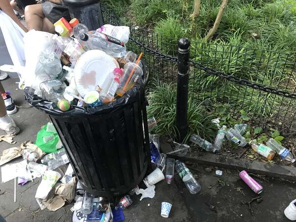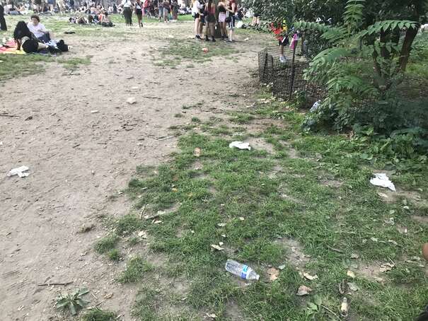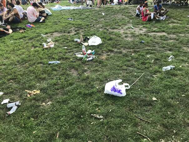 I couldn’t get to the middle of the park since the density of people was too high. Anyway, here’s a representative picture: someone casually sticking waste on top of overflowing waste, already on to her next thing.