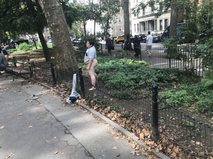 Anyway, here are a couple images of a woman pooping in broad daylight in the park. I’ve seen her around and as far as I can tell is not sane. Again, the issue is our culture. How is a crazy woman left to wander around aimlessly, pooping in public, mere yards from incredibly expensive luxury buildings on lower Fifth Avenue, surrounded by buildings owned by the purportedly elite New York University?