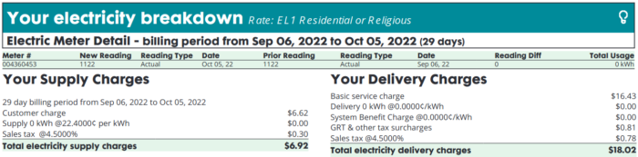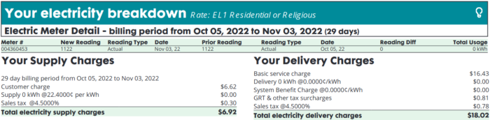 October: Zero: 0 kWh ($0.00 + fixed costs)