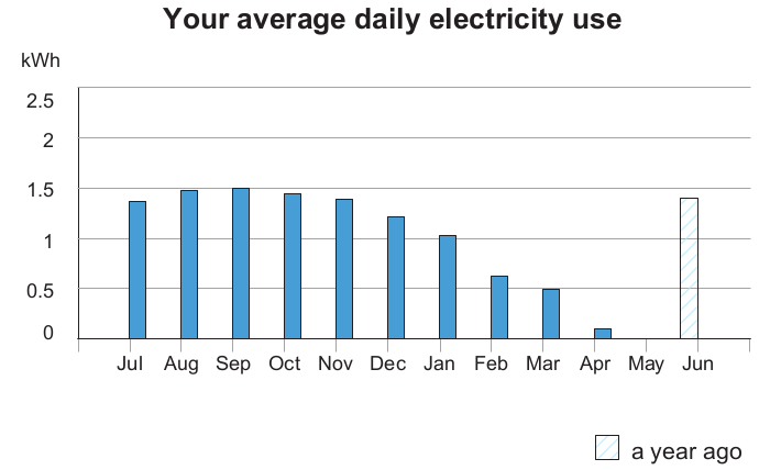 My first electrical bill came by email yesterday. First the bar chart: