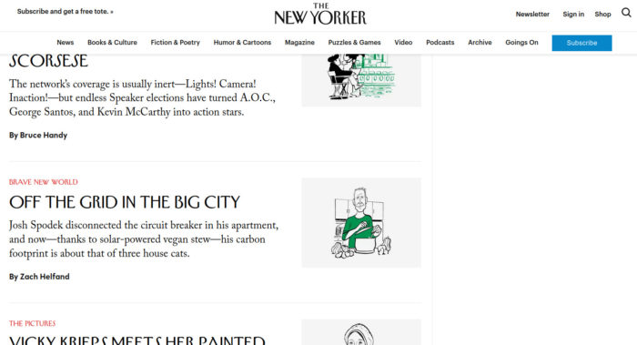 My letter to the New Yorker’s editor in September led to a reporter, Zach Helfand, visiting and writing a story on me. They published it today (including spotlighting it, see below): Off the Grid in the Big City: