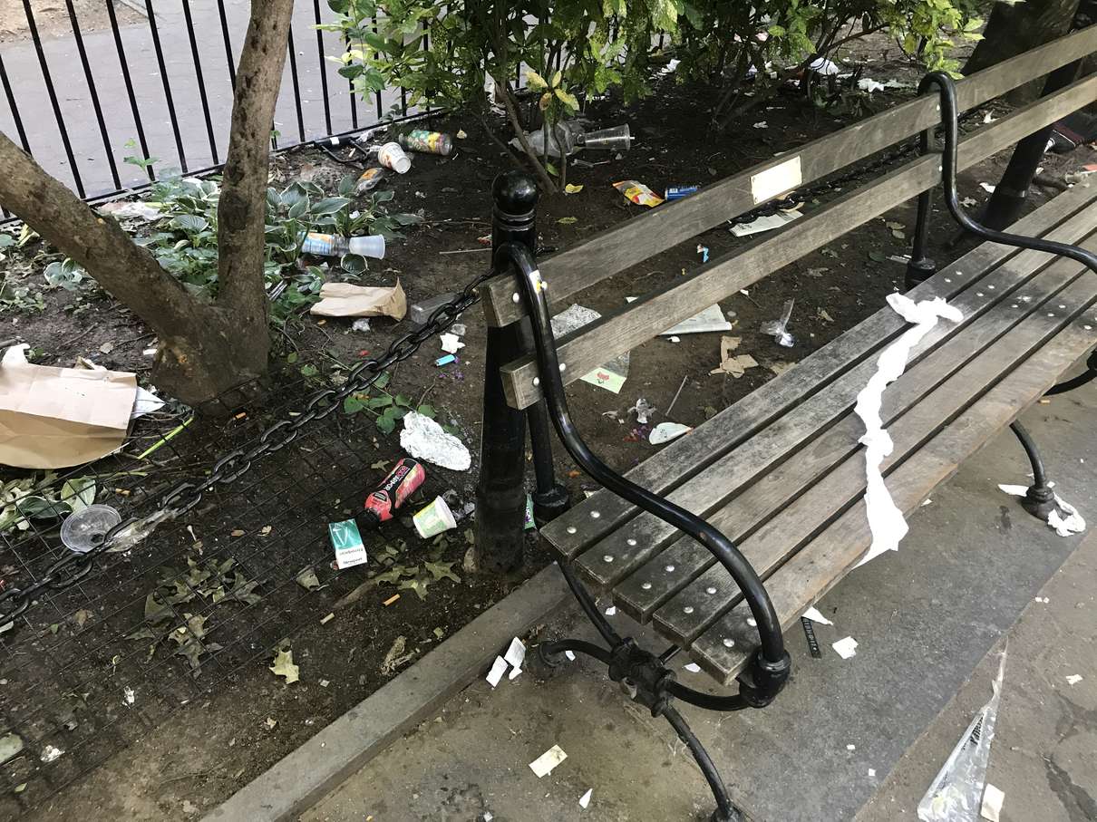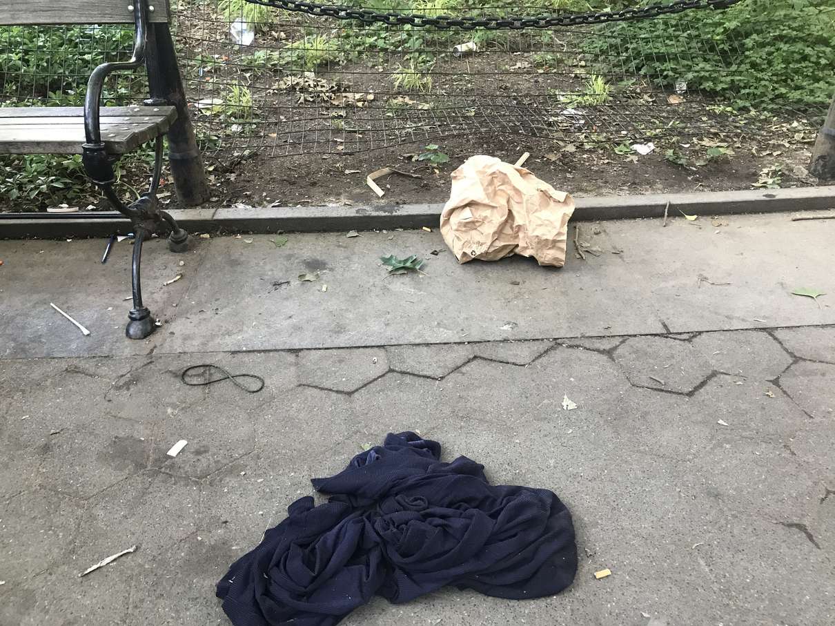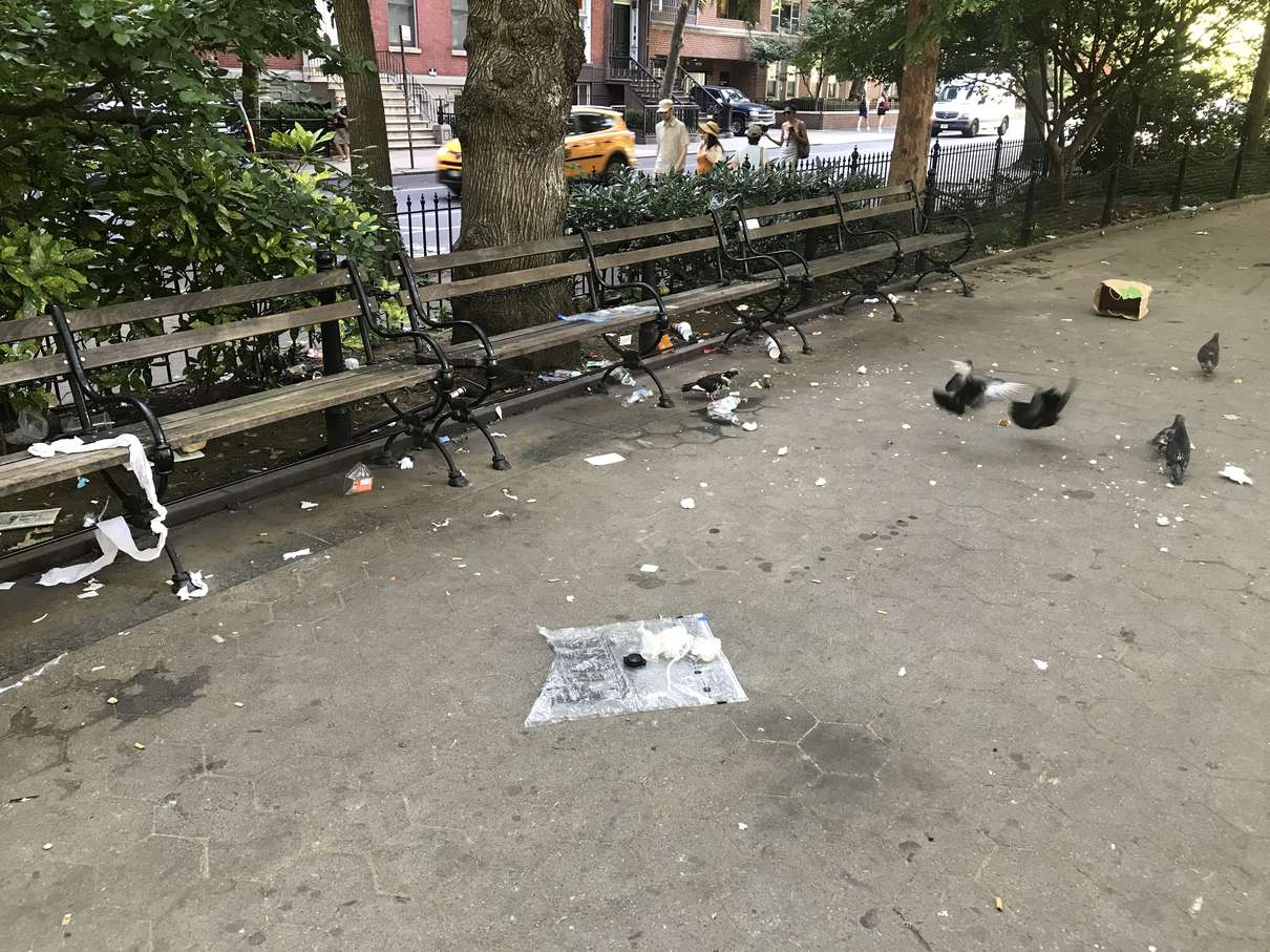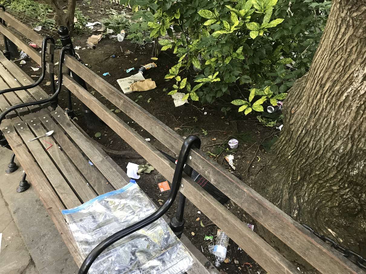 To clarify: if you are not living sustainably you are likely as addicted as a heroin user and everyone leaving this mess in Washington Square Park. As horrific as it looks, it’s nothing compared to the poison and pollution from one flight, regularly ordering takeout, owning a big car, or any of what Americans consider normal.