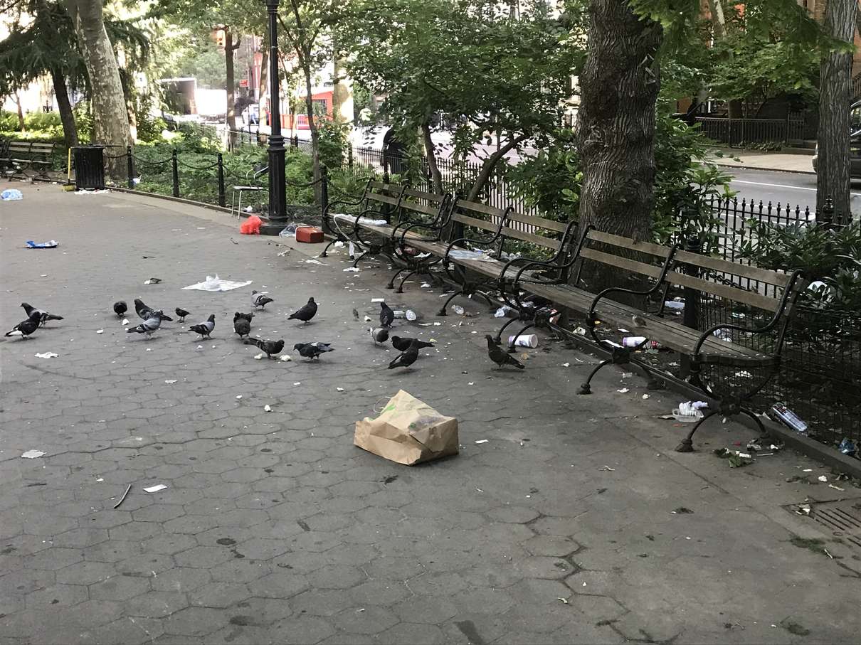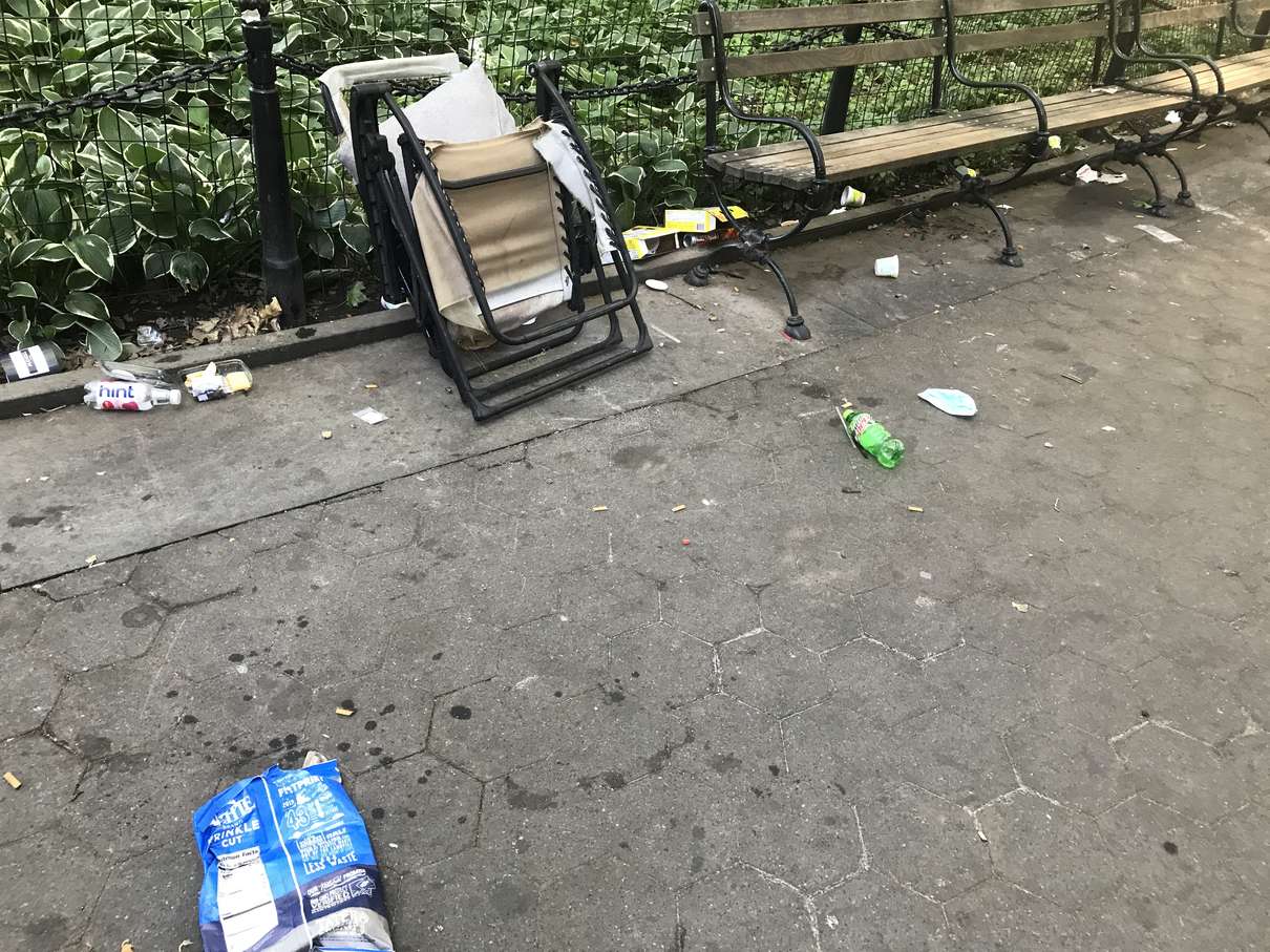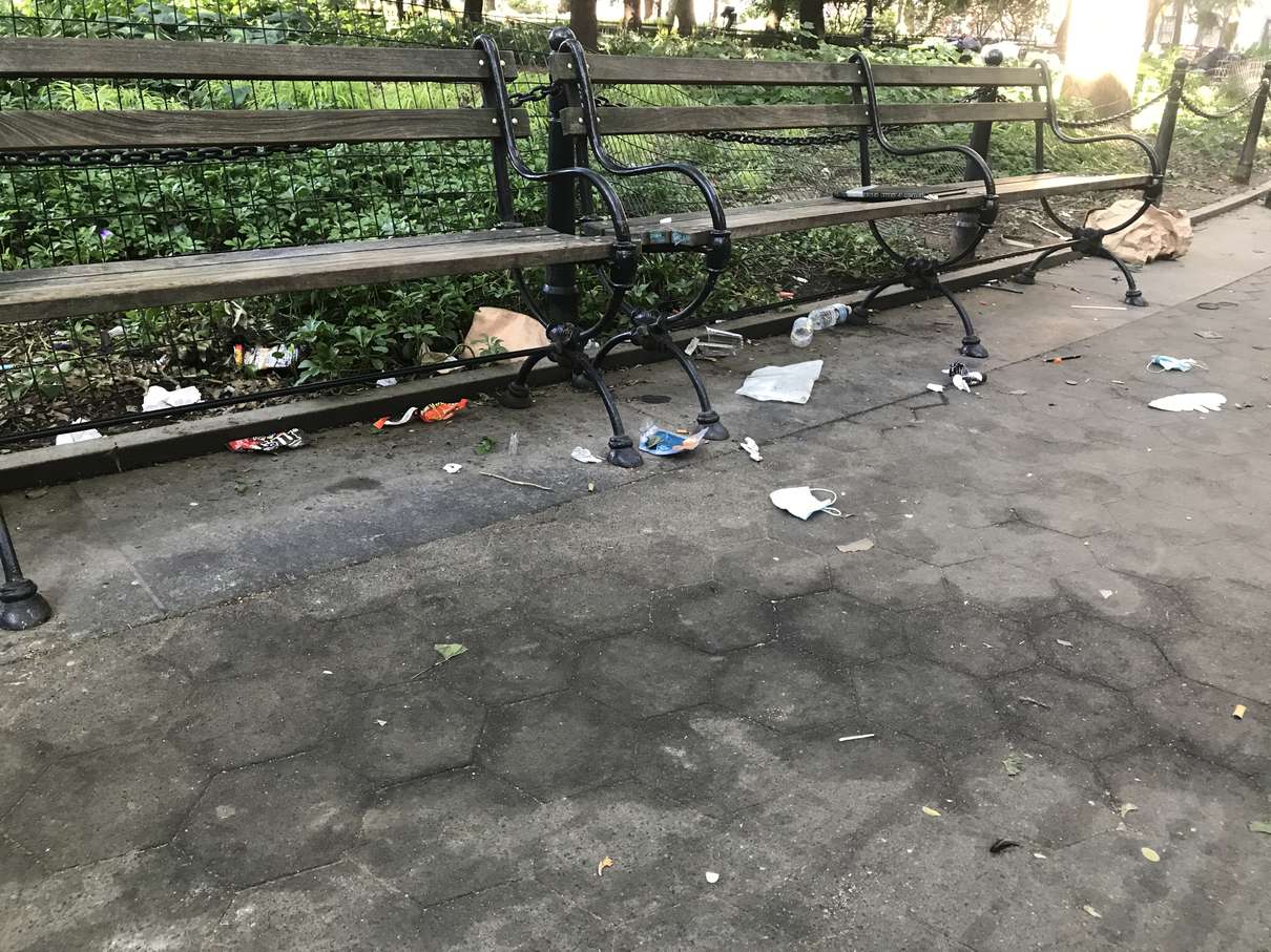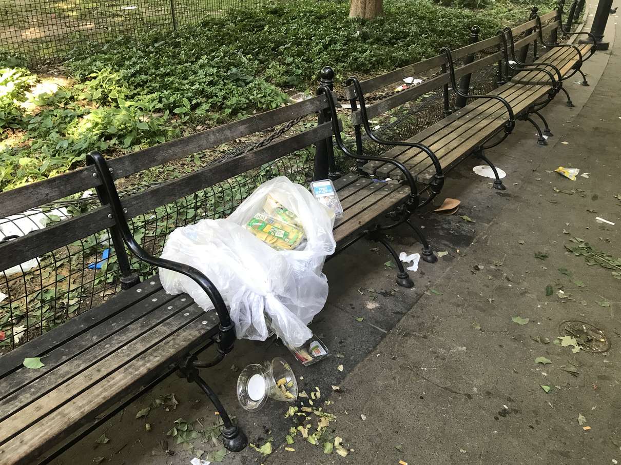 To clarify: if you are not living sustainably you are likely as addicted as a heroin user and everyone leaving this mess in Washington Square Park. As horrific as it looks, it’s nothing compared to the poison and pollution from one flight, regularly ordering takeout, owning a big car, or any of what Americans consider normal.