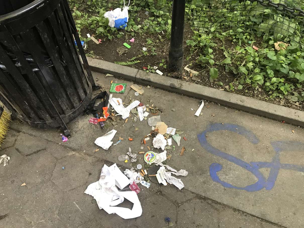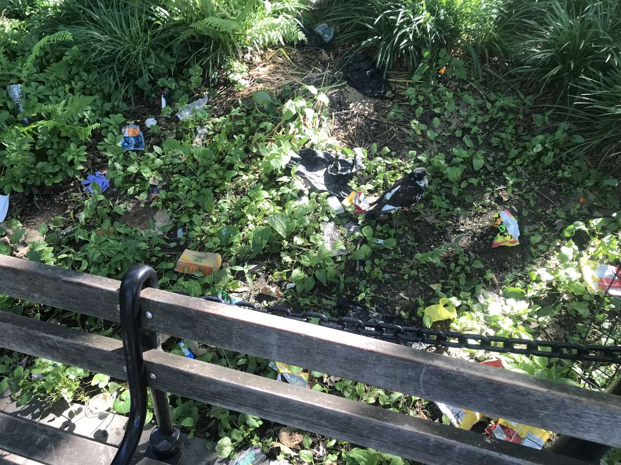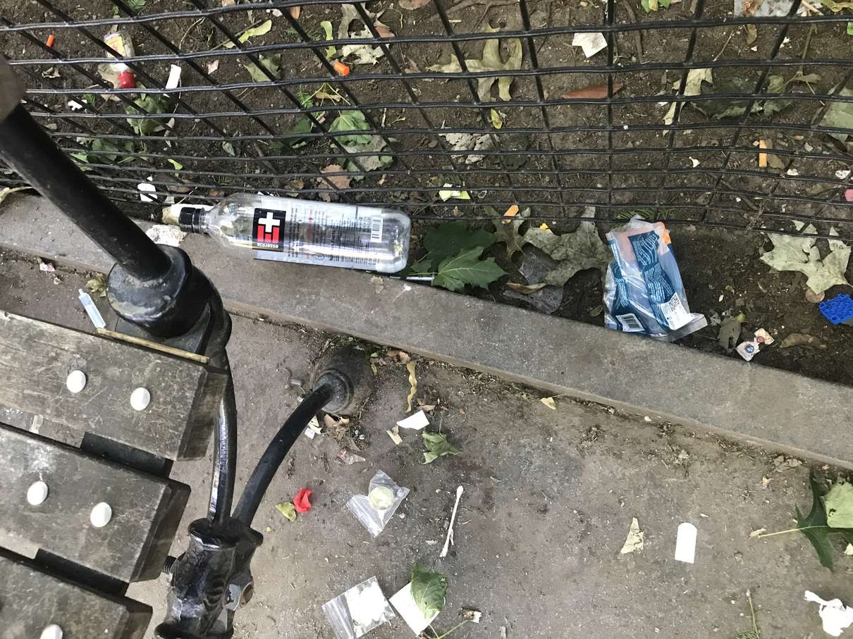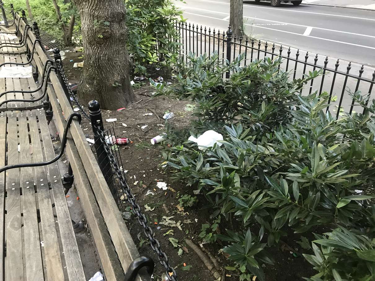 To clarify: if you are not living sustainably you are likely as addicted as a heroin user and everyone leaving this mess in Washington Square Park. As horrific as it looks, it’s nothing compared to the poison and pollution from one flight, regularly ordering takeout, owning a big car, or any of what Americans consider normal.