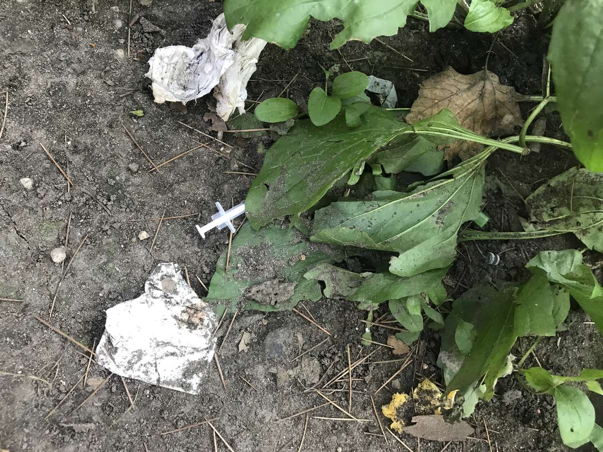 You’ll see a few syringes of the many strewn about, giving you an idea of what motivates the mess. Addiction means hopeless and helpless to see a possibility for tomorrow being better than today, so why care about a mess?