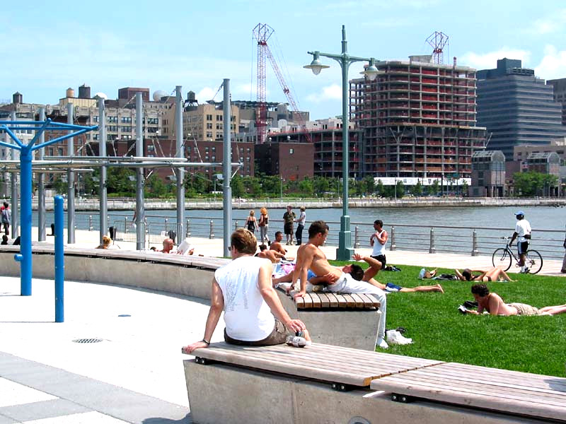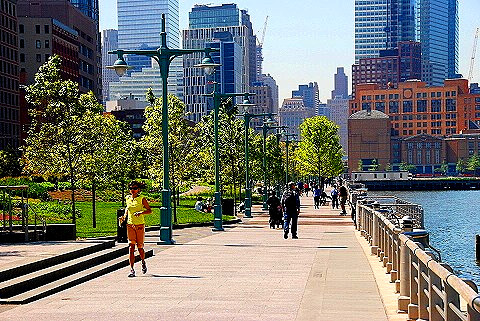 Living by the Hudson River means I can run without having to stop at traffic lights in Hudson River Park, which the city has slowly been improving. Here are some pictures of it I found on the web. It’s beautiful in places and usable for running, cycling, skating, sunbathing, and so on.