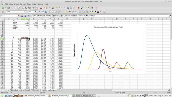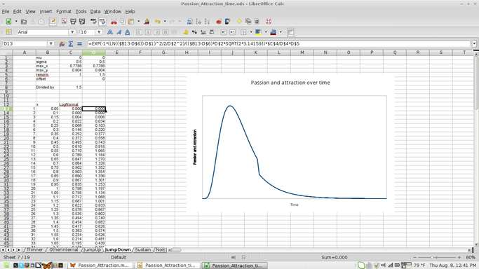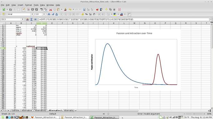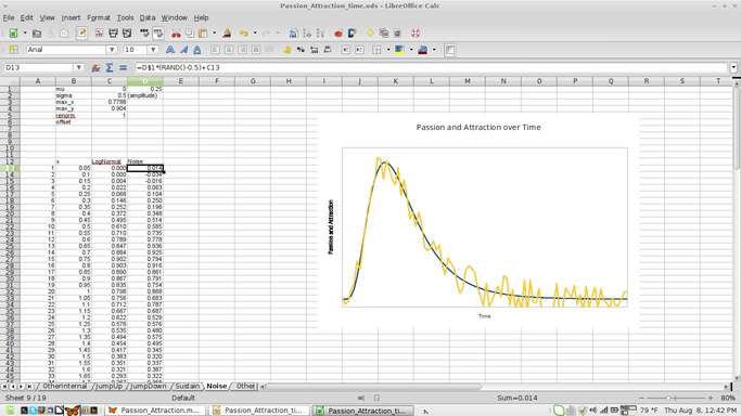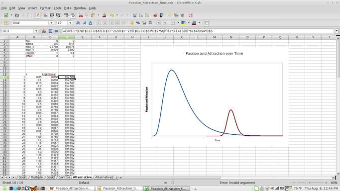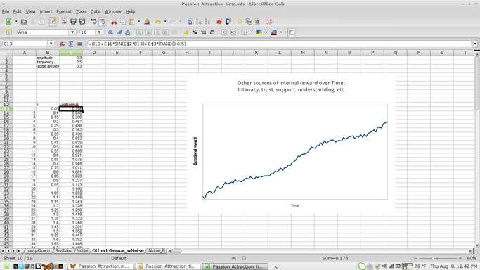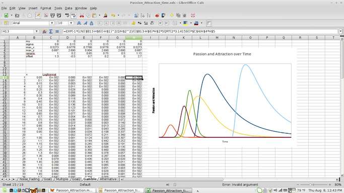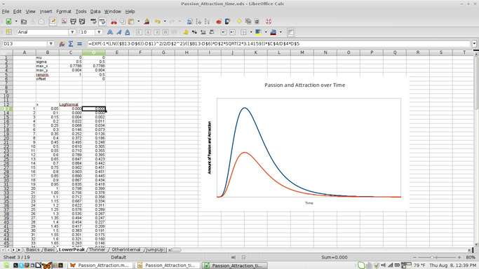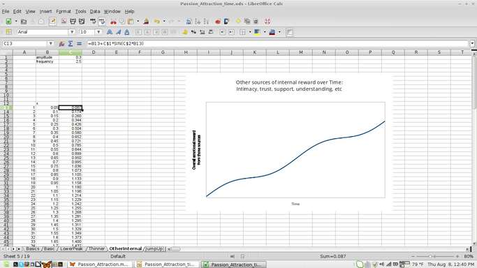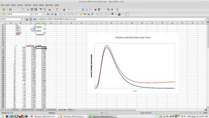 Then recently I hand-drew a few of the graphs to illustrate some of my thoughts about how passion and attraction grew and decayed. Points I had trouble communicating without the graphs suddenly seemed clear to people I showed them to, reminding us why we learn to graph functions to describe nature. They clarify our understanding of how things that depend on each other depend on each other.