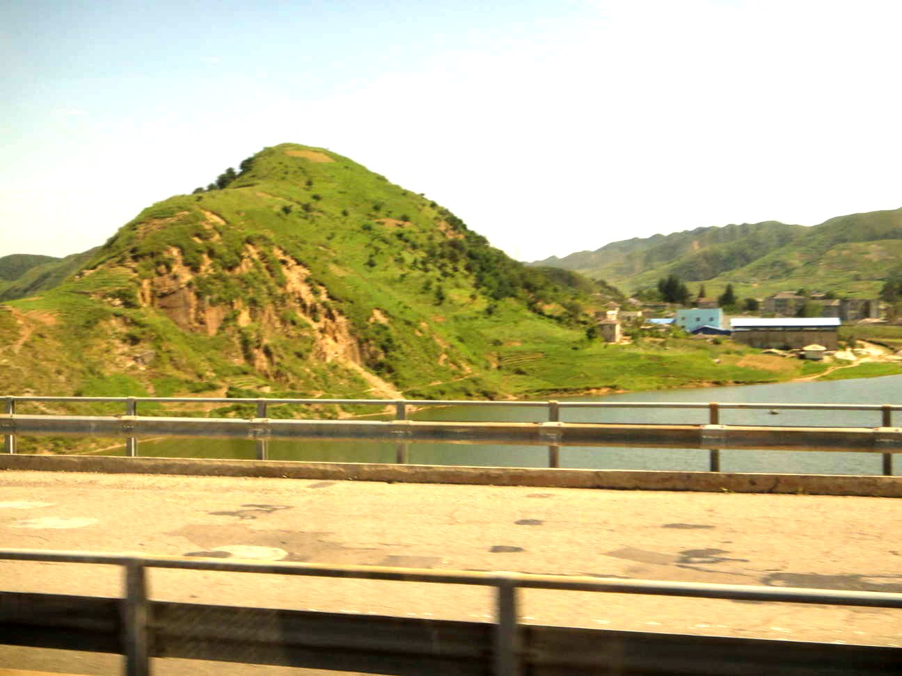 Much of the landscape reminded me of the tv show M*A*S*H, which I long considered the best show ever. I can almost hear the theme song, "Suicide is painless," and see the choppers coming over the hill. Many of the crop fields by the road had huts, which we assumed were for farmers to sleep in if they worked late. After all, we saw no large farm equipment so we assumed they farmed by hand. When I returned I read a New Yorker article about an American on tour in North Korea who thought they like bird blinds and said he wanted to hunt too. His guides told him the stands were to hold soldiers with orders to shoot people stealing crops.