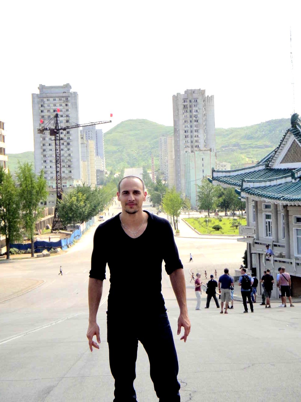 I can't see the disc in this shot, but I can see Gabriel taking their picture too. I guess the guides get used to being part of the show for tourists, especially Western ones like us. I wonder if they realize what we see as different or not. On another note, Gabriel and I had a drink when he passed through New York City about a month ago, which was about a month after the North Korean visit. We both remarked we were still riding the wave that visiting such a different place brought to our lives.