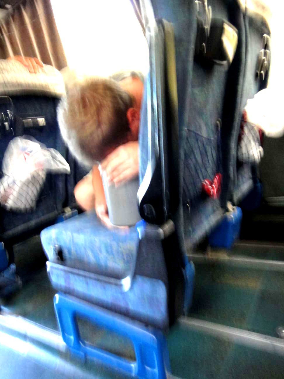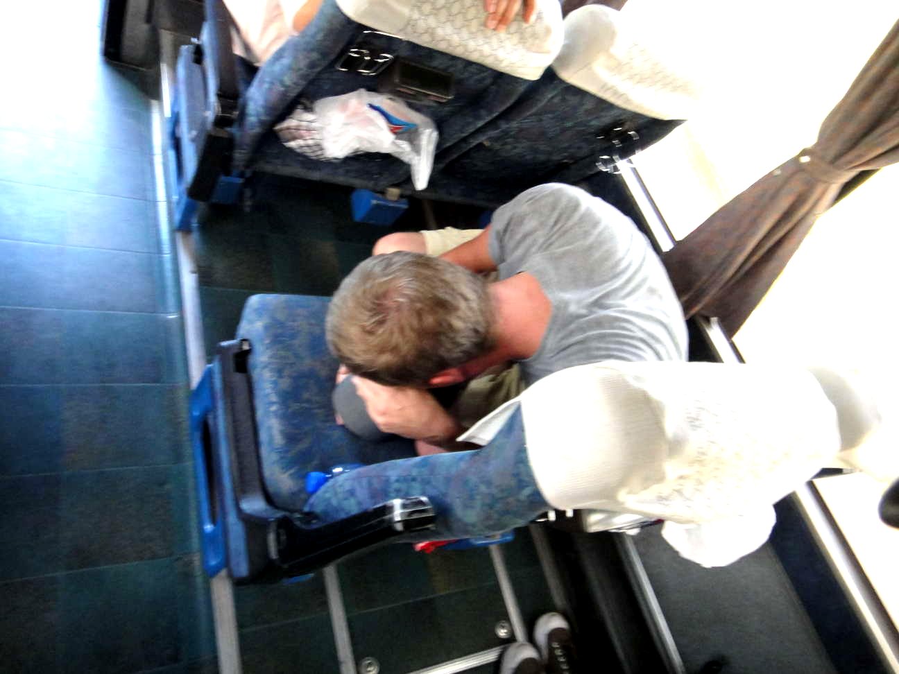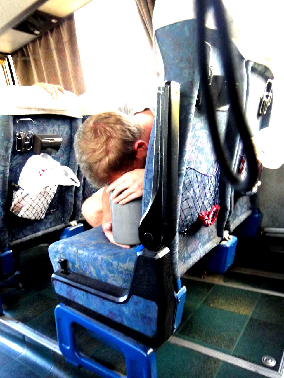 What kind of jerk would take so many pictures of a man clearly not feeling well, showing no pride in his predicament? Well, that would be me, at the behest of the others in the bus.