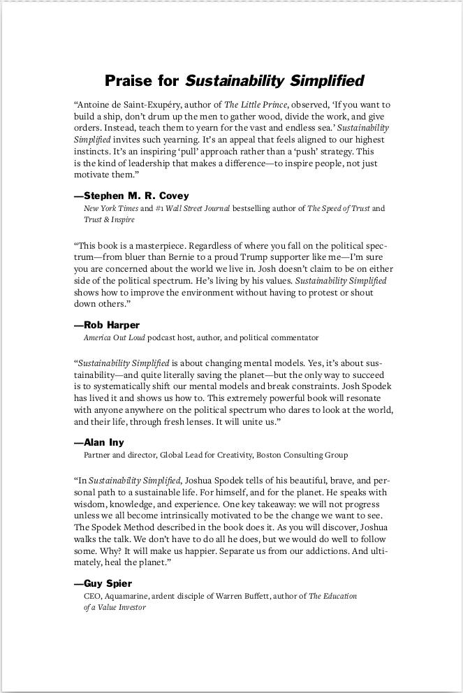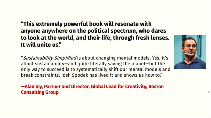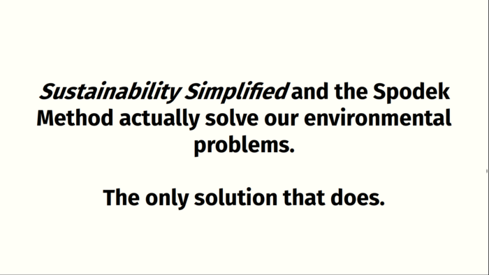 When my new book Sustainability Simplified: The Definitive Guide to Understanding and Solving All (Yes, All) Our Environmental Problems comes out, I’ll start a new web page for sustainability leadership: SpodekMethod.com.