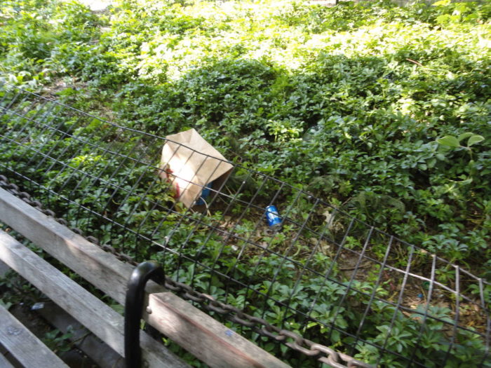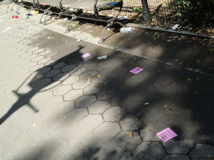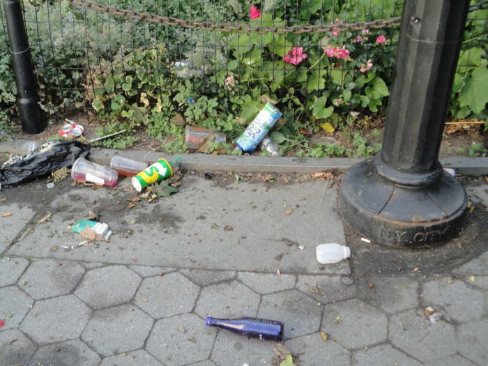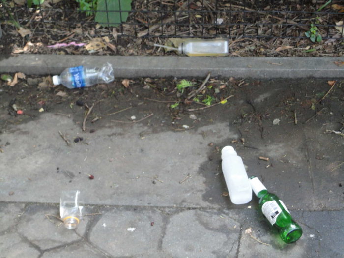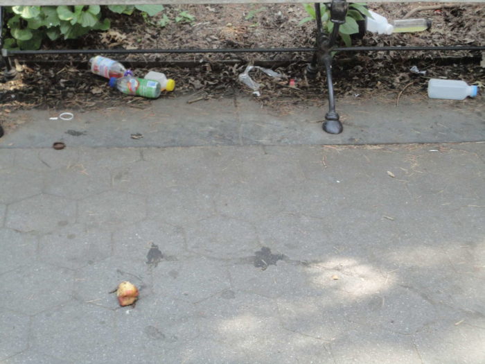 EDIT: See the global coverage from the UK: The morning after… empty liquor bottles, beer cans, and pizza boxes are seen littered across Washington Square Park following another weekend of fights, arrests and revelry. The article shows the park before I got to it. The first words: “WARNING: GRAPHIC CONTENT“.