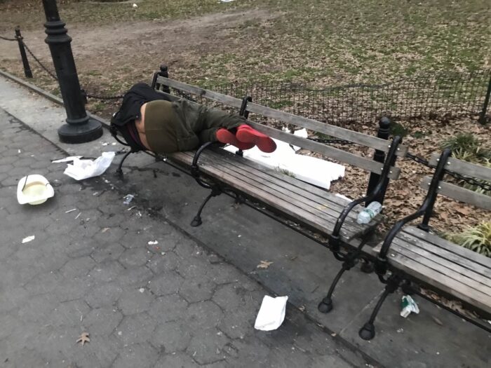 Here’s a guy sleeping amid trash, again not nearly as much as others: