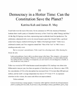 “Can the Constitution Save the Planet?“, chapter in Democracy in a Hotter Time: Climate Change and Democratic Transformation, by Katrina Kuh and James R. May: Another paper from another Pace professor in environmental law, or rather a chapter from a book