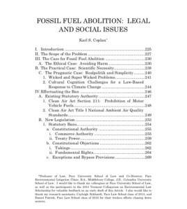 “Fossil Fuel Abolition: Legal and Social Issues“, in the Columbia Journal of Environmental Law, by Karl S. Coplan: I met a professor and dean at Pace University who pointed out that Pace’s environmental law school ranks near the top in the field. He sent me this piece 2016 piece by a professor in that school.