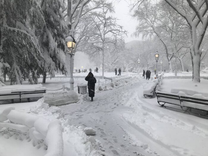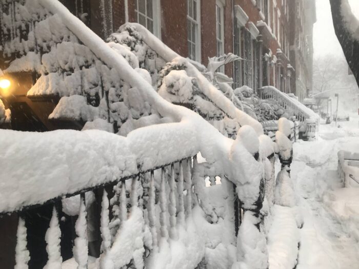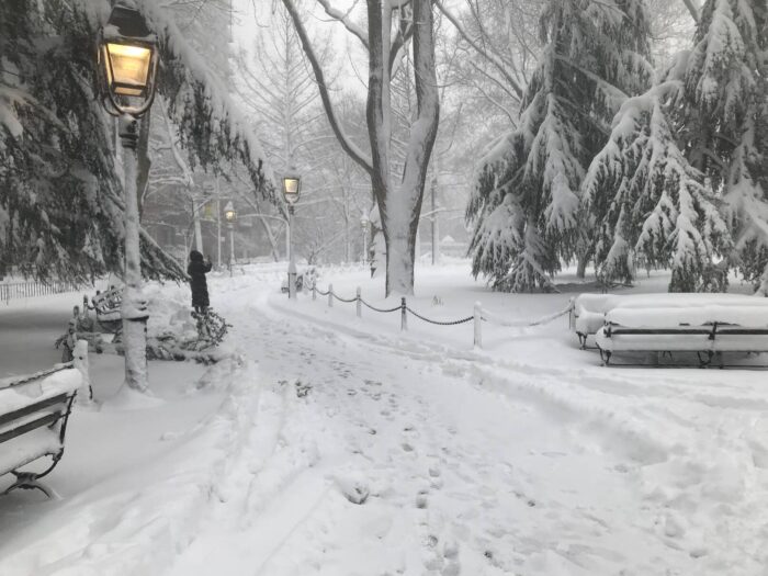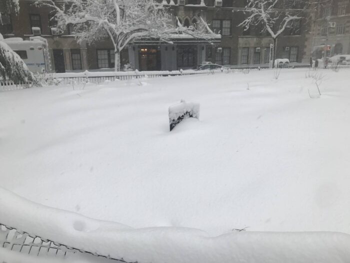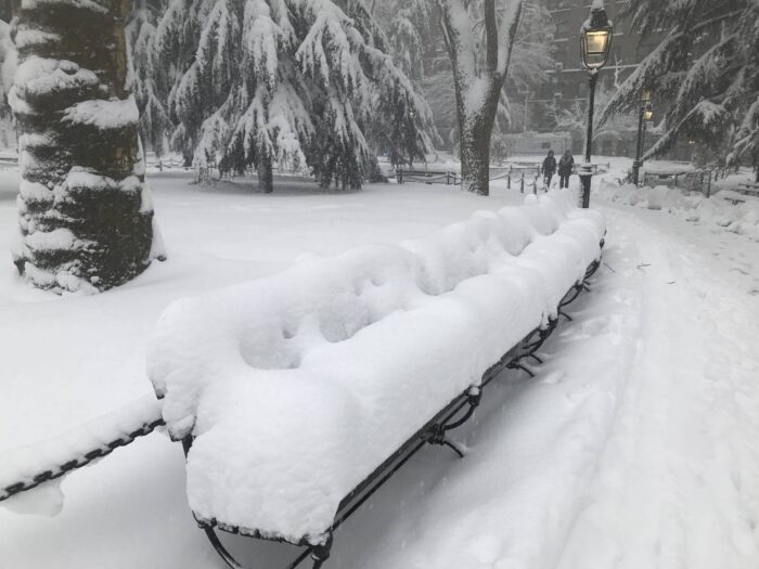 The accumulation on the benches illustrate how much snow we’ve gotten. It’s hours later now that I’m writing and the snow hasn’t slowed.